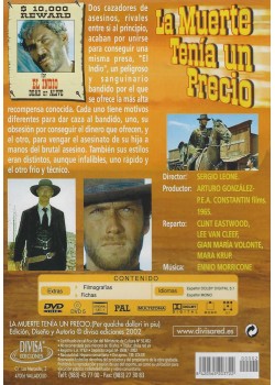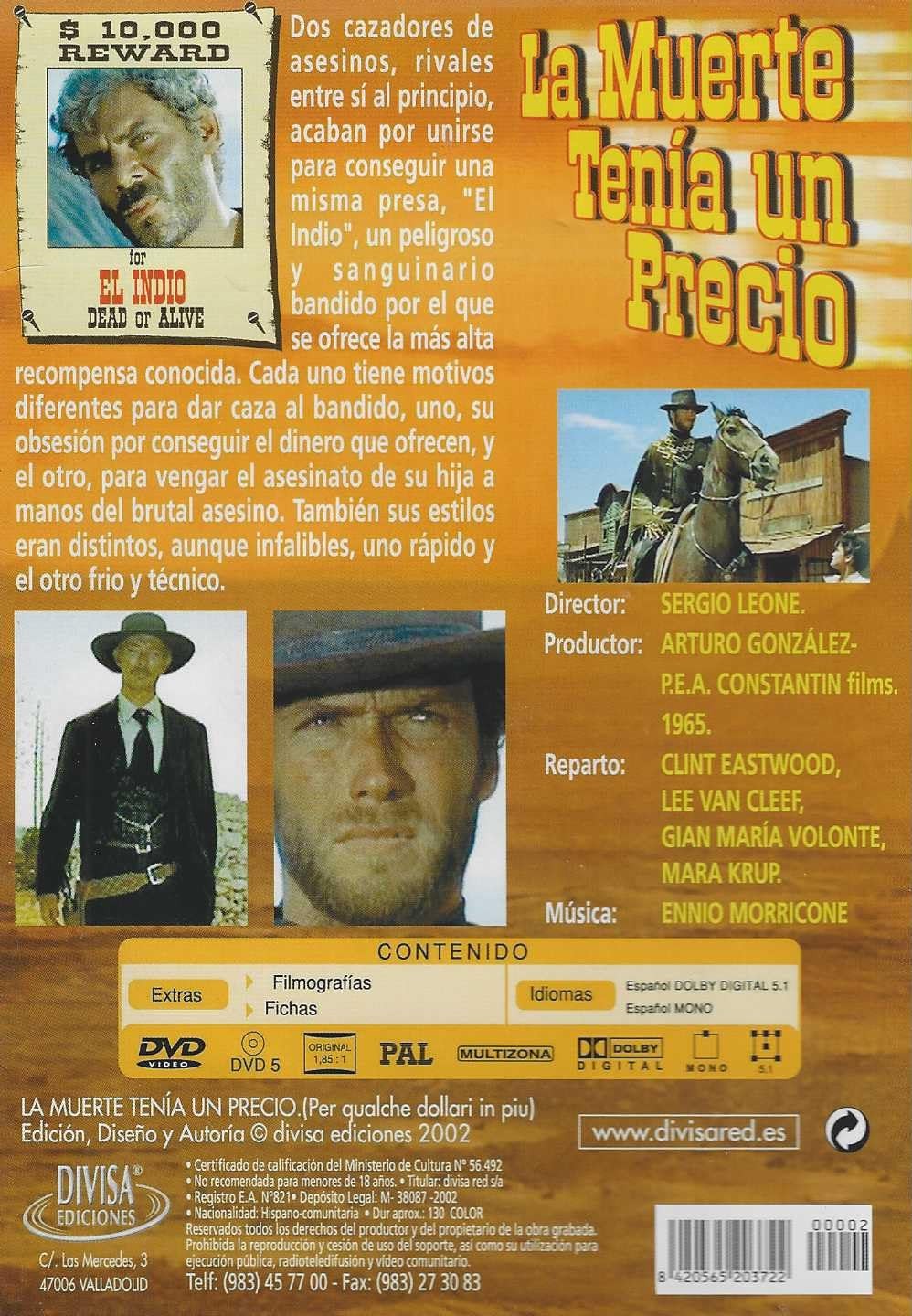 https://back.dvdstorespain.es/en/second-hand/130329-la-muerte-tenia-un-precio-dvd-clasicos-del-western-dvd-2024--0605848604306.html130329La Muerte Tenía un Precio [DVD] (1965) Per qualche dollaro in più (Segunda mano)Dos cazadores de recompensas que buscan al mismo hombre deciden unir sus fuerzas para encontrarlo, aunque las razones que los mueven son completamente diferentes... Su título original ("Per qualche dollaro in più") ya sugiere que es la continuación natural de "Por un puñado de dólares" ("Per un pugno di dollari"), dirigida por Leone un año antes.https://dvdstorespain.es/1147737-home_default/la-muerte-tenia-un-precio-dvd-clasicos-del-western-dvd-2024-.jpg5.2893instock5.28935.2893002026-03-15T13:22:00+0100/Start/Start/DVD/Start/Films/Start/Second hand