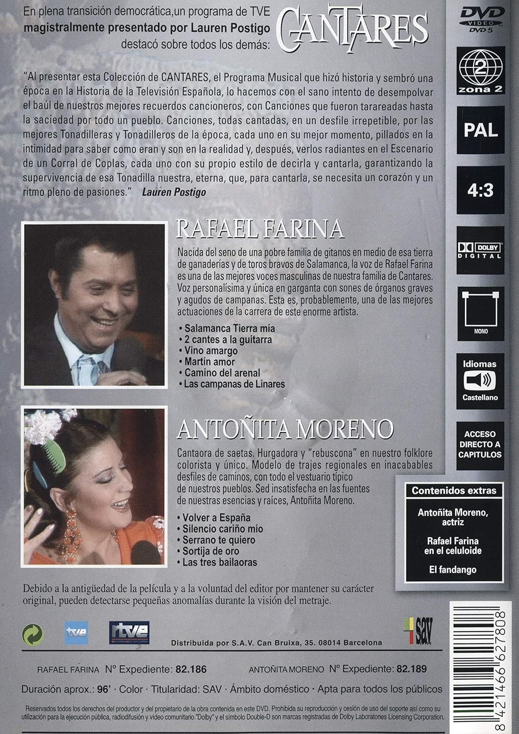 https://back.dvdstorespain.es/en/tv-series/123618-cantares-rafael-farina-antonita-moreno-dvd--8421466627808.html123618Cantares: Rafael Farina Y Antoñita Moreno [DVD] (1978)Programa musical estrenado el 3 de febrero de 1978, dirigido y realizado por Miguel de la Hoz y presentado por Lauren Postigohttps://dvdstorespain.es/764210-home_default/cantares-rafael-farina-antonita-moreno-dvd-.jpg7.2727instock7.27277.2727002025-06-05T01:30:22+0200/Start/Start/DVD/Start/TV series/Start/New