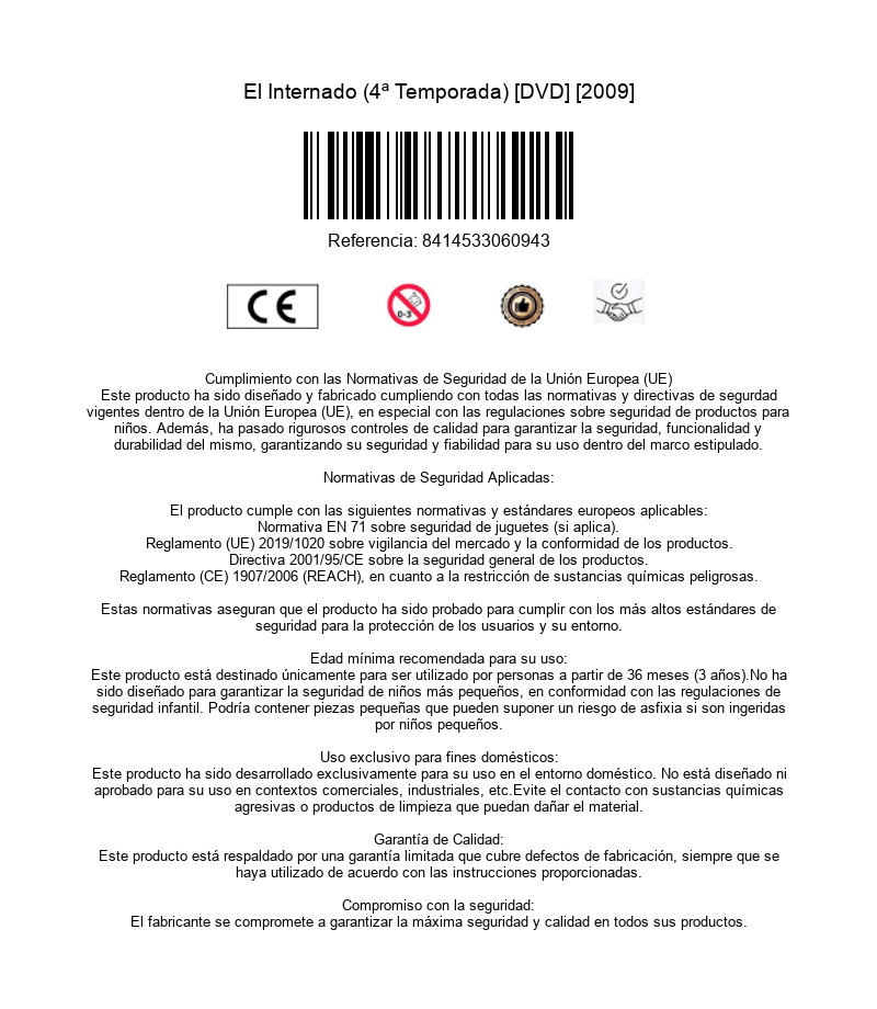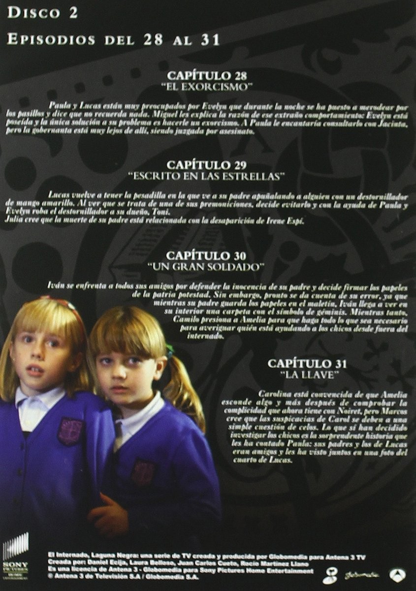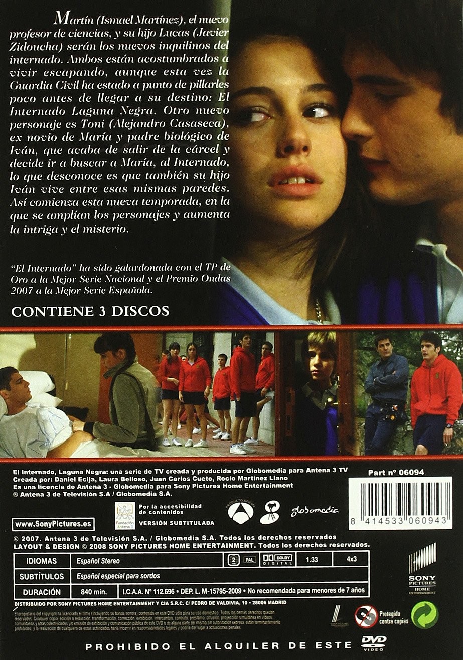 https://back.dvdstorespain.es/en/tv-series/129436-el-internado-4-temporada-dvd-2009--8414533060943.html129436El Internado (4ª temporada) [DVD] (2007)Serie de TV (2007-2010). 7 temporadas. 71 episodios. La acción se desarrolla en un colegio aislado situado en mitad de un bosque, 'La laguna negra'. Algunos de los alumnos, los profesores y el personal de servicio del centro escolar guardan un pasado con enigmas que, poco a poco, irán saliendo a la superficie. Jacinta (Amparo Baró) es la gobernanta y verdadera alma del colegio, una mujer de fuerte carácter pero de gran corazón. Héctor (Luis Merlo) es el director del centro, un pedagogo idealista que está convencido de que la educación puede ayudar a cambiar el mundo. Otros personajes son Elsa (Natalia Millán), jefa de estudios y prometida de Héctor, a la que le gusta la disciplina y no quiere que nadie se entrometa en su pasado, y María (Marta Torné), la nueva limpiadora del colegio que llega al internado tras escaparse de un psiquiátrico. Entre los internos están los hermanos Marcos (Martiño Rivas) y Paula (Carlota García), tras haber sufrido la desaparición de sus padres, Carolina (Ana de Armas) y Victoria (Elena Furiase), así como otros escolares adolescentes. Todos ellos tienen en común el vivir marcados por la soledad y la carencia afectiva. https://dvdstorespain.es/1132800-home_default/el-internado-4-temporada-dvd-2009-.jpg19.1736instock19.173619.1736002026-02-23T18:31:12+0100/Start/Start/DVD/Start/Films/Start/New