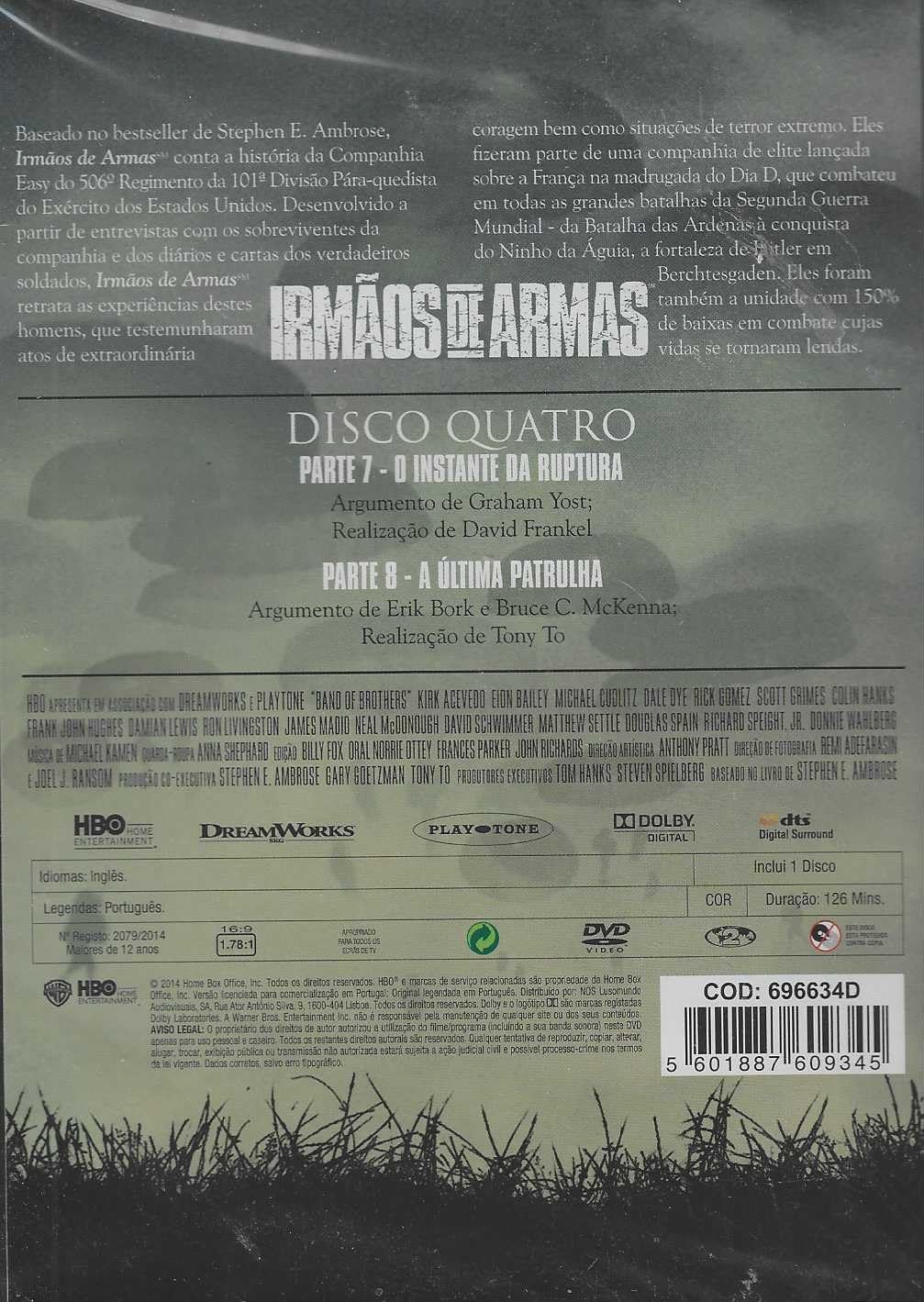 https://back.dvdstorespain.es/en/tv-series/130648-irmaos-de-armas-dvd-disco-4-dvd-2024--5601887609345.html130648Irmãos de Armas [Portugal] (Disco 4) [DVD] (2001) Band of BrothersMiniserie de TV. 10 episodios. Narra la historia de la Easy Company, un batallón estadounidense del regimiento 506 de paracaidistas, que luchó en Europa durante la II Guerra Mundial. Incluye entrevistas a los supervivientes, recuerdos de los periodistas y cartas de los soldados... Basada en el bestseller "Band Of Brothers", de Stephen E. Ambrose.https://dvdstorespain.es/1152256-home_default/irmaos-de-armas-dvd-disco-4-dvd-2024-.jpg7.9339instock7.93397.9339002026-03-20T02:15:29+0100/Start/Start/DVD/Start/TV series/Start/New