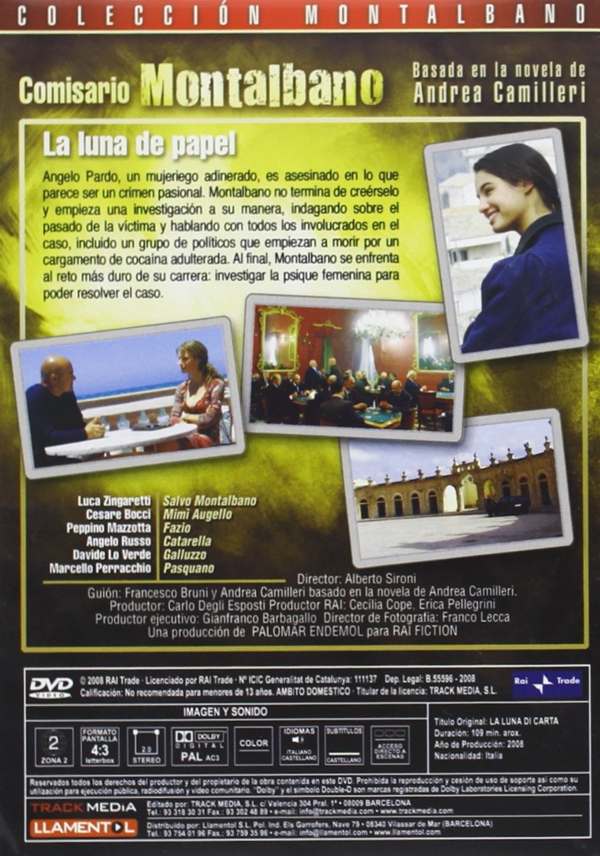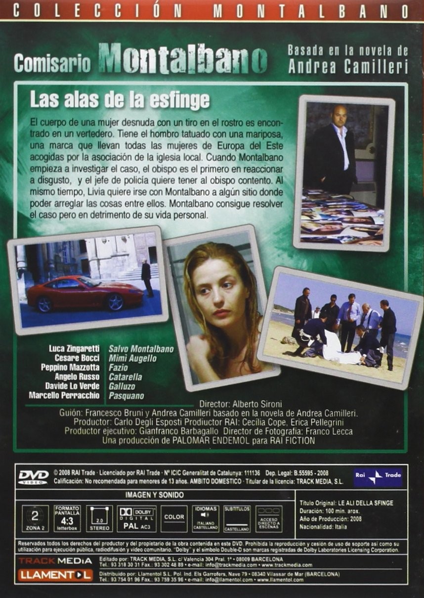 Serie de TV (1999-2020). 14 temporadas. 36 episodios. Adaptación de los relatos y novelas del escritor siciliano Andrea Camilleri. Montalbano es comisario de policía en Vigata (Porto Empedocle), en Agrigento. Sus colaboradores principales son: el vicecomisario Domenico Augello, los inspectores Fazio y Gallo, el telefonista Catarella -cuyos problemas de lenguaje traen de cabeza al comisario-, y el agente Galluzzo. Montalbano es un personaje peculiar, funcionario celoso, no siempre respetuoso con la ley, lector voraz y gran amante de la gastronomía y de su tierra siciliana.