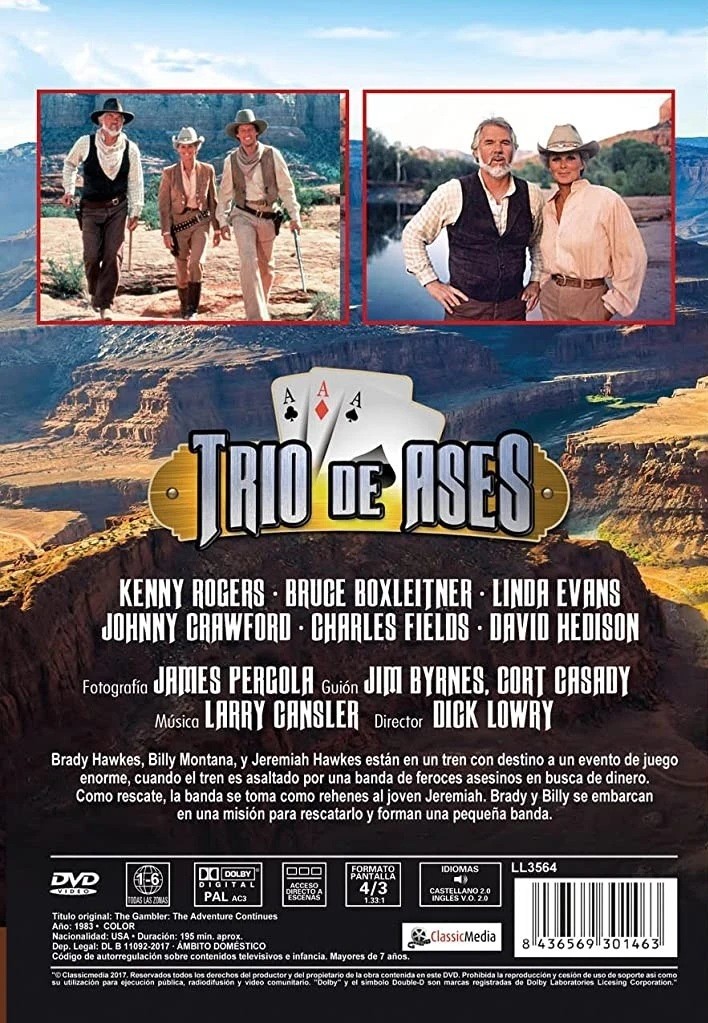 https://back.dvdstorespain.es/en/tv-series/35450-the-gambler-the-adventure-continues-dvd--8436569301463.html35450Trío de Ases [DVD] (1983) The Gambler: The Adventure ContinuesBrady Hawkes, Billy Montana, y Jeremiah Hawkes están en un tren con destino a un evento de juego enorme, cuando el tren es asaltado por una banda de feroces asesinos en busca de dinero. Como rescate, la banda se toma como rehenes al joven Jeremiah. Brady y Billy se embarcan en una misión para rescatarlo y forman una pequeña banda. https://dvdstorespain.es/519441-home_default/the-gambler-the-adventure-continues-dvd-.jpg4.0496instockLlamentol4.04964.0496002017-06-08T08:40:57+0200/Start/Start/DVD/Start/TV series/Start/New/Start/EVENING SP 70