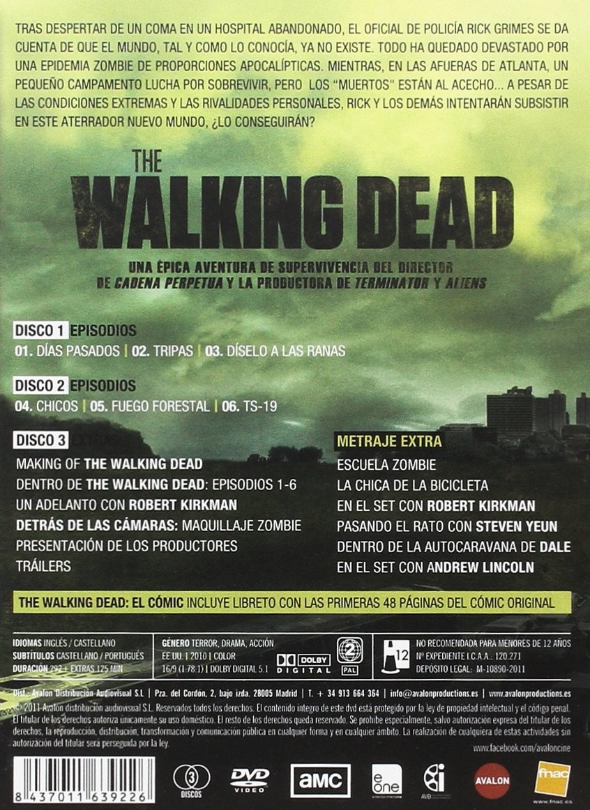 https://back.dvdstorespain.es/en/tv-series/45208-the-walking-dead-dvd--8437011639226.html45208The Walking Dead [DVD]<div id="productDescription" class="a-section a-spacing-small"><br /><p><span>The first season of <span>The</span> Walking Dead, an American post-apocalyptic horror television series on AMC, premiered on October 31, 2010 and concluded on December 5, 2010, consisting of 6 episodes. Developed for television by <span>Frank</span> Darabont, who wrote or co-wrote four of the season's six episodes and directed the pilot episode, "Days Gone Bye", the series is based on the eponymous comic book series by Robert Kirkman, Tony Moore and Charlie Adlard. . [1] It was executive produced by Darabont, Kirkman, David Alpert, Charles H. Eglee, and Gale Anne Hurd, with Darabont assuming the role of showrunner.</span></p></div>https://dvdstorespain.es/495506-home_default/the-walking-dead-dvd-.jpg11.9008instockCameo Media,S.L.11.900811.9008002018-10-02T14:47:39+0200/Start/Start/DVD/Start/TV series/Start/New/Start/EVENING SP 70/Start/VELADA DE 80/Start/VELADA FR 80/Start/VELADA IT 80