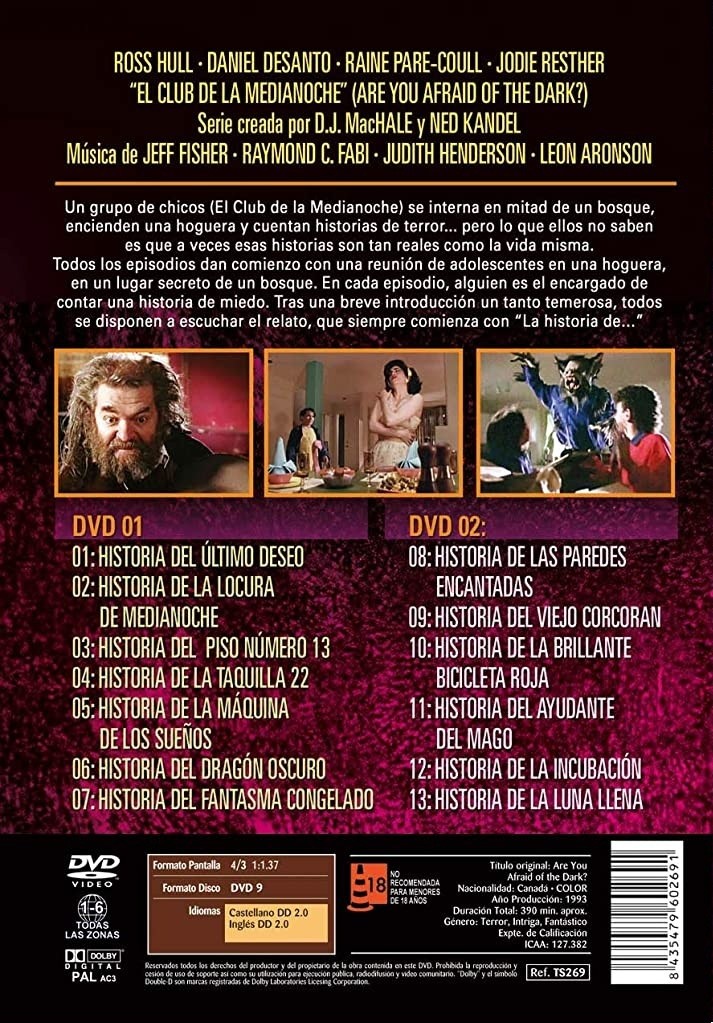 https://back.dvdstorespain.es/en/tv-series/47187-are-you-afraid-of-the-dark-season-2-dvd--8435479602691.html47187El Club de la Medianoche (Temporada 2) [DVD] (1991) Are You Afraid of the Dark?Serie de TV (1991-1996 y 1999-2000). 7 temporadas. 91 episodios. Popular serie canadiense en la que los miembros de un grupo de adolescentes, pertenecientes a "El club de la medianoche", se ponían alrededor de una hoguera en un enclave secreto en medio del bosque y contaban historias de terror. Se hicieron 7 temporadas entre los años 1991 y 2000, con una pausa en los años 97-98. En 1999 se retomó y se hizo la séptima y última temporada.https://dvdstorespain.es/487361-home_default/are-you-afraid-of-the-dark-season-2-dvd-.jpg7.438instockResearch Entertainment7.4387.438002018-12-07T17:47:12+0100/Start/Start/DVD/Start/TV series/Start/New/Start/18 YEARS YES D&O