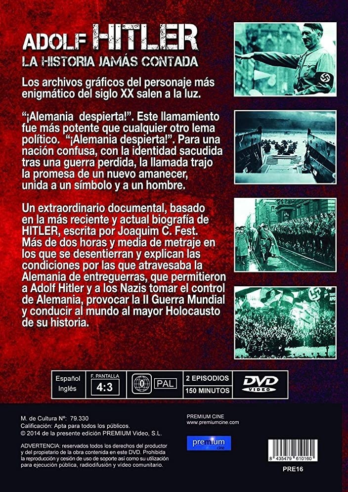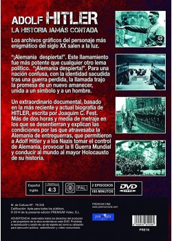 https://back.dvdstorespain.es/en/tv-series/55611-hitler-eine-karriere-dvd--8435479610160.html55611Adolf Hitler: la Historia Jamás Contada (2 discos) [DVD] (1977) Hitler - Eine KarriereUsando material real de archivo de la época, un documental que supone una completa narración del ascenso y caída de Adolf Hitler (1889-1945) y de la relación de su figura respecto al pueblo alemán. Escrito por Joachim C. Fest. Narrado por Stephen Murray.https://dvdstorespain.es/1117223-home_default/hitler-eine-karriere-dvd-.jpg5.7025instockResearch Entertainment5.70255.7025002020-05-14T00:30:52+0200/Start/Start/DVD/Start/TV series/Start/New/Start/Best Documentaries on Blu-Ray and DVD