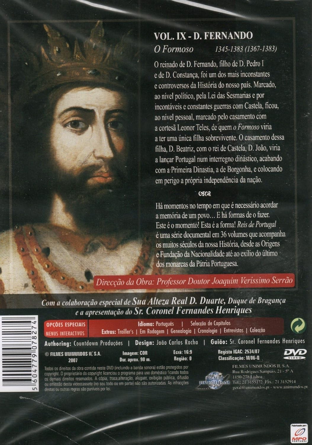 Descubre la fascinante historia de Portugal con este DVD documental sobre D. Fernando I, conocido como 'O Formoso' (El Hermoso), que reinó entre 1367-1383. Este volumen IX de la serie 'Reis de Portugal' explora uno de los reinados más controvertidos e inestables de la historia portuguesa. El documental, producido por Filmes Unimundos, examina detalladamente el período marcado por conflictos políticos, la Ley de Sesmarias y las constantes guerras con Castilla. Con una duración aproximada de 90 minutos, incluye características especiales como menús interactivos, genealogía, cronología y entrevistas. Dirigido por el Profesor Doctor Joaquim Veríssimo Serrão, cuenta con la colaboración especial del Duque de Bragança y la presentación del Coronel Fernandes Henriques. El DVD está en portugués y presenta una relación de aspecto 16:9, ofreciendo una experiencia educativa completa sobre este período crucial de la historia portuguesa.
