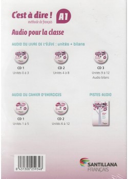 Descubre el método completo de aprendizaje del francés 'C'est à dire!' nivel A1 con este conjunto integral de audio para la clase. Este paquete incluye 5 CDs que abarcan todas las unidades del curso: tres CDs para el libro del alumno (unidades 0-12 más evaluaciones) y dos CDs para el cuaderno de ejercicios (unidades 1-12). Desarrollado por Santillana Français, este material didáctico está perfectamente estructurado para facilitar el aprendizaje progresivo del idioma francés desde el nivel básico. Los CDs contienen todo el material auditivo necesario para las actividades del libro del alumno y del cuaderno de ejercicios, permitiendo una inmersión completa en la pronunciación y comprensión oral del francés. Ideal para profesores y centros educativos que buscan un recurso pedagógico completo y bien organizado para la enseñanza del francés como lengua extranjera.