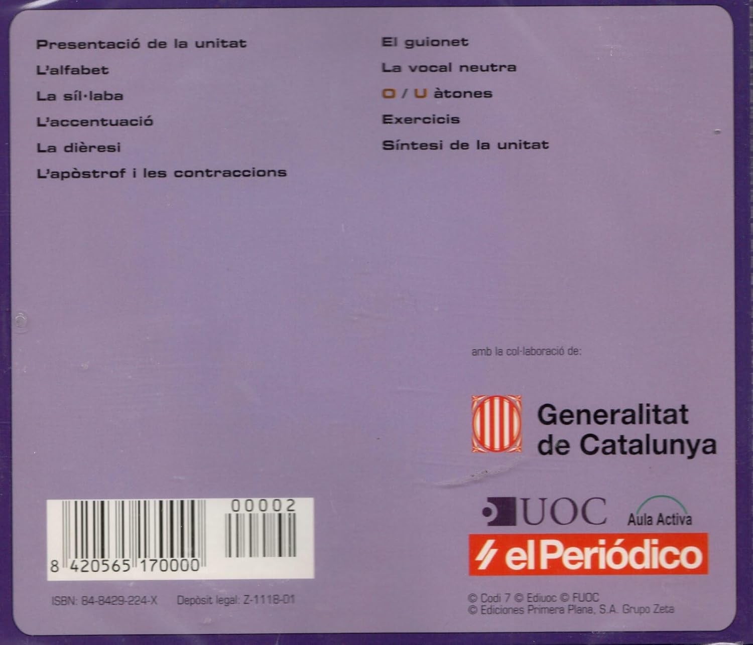 Descubre 'El Català Diari - Ortografia 1, Unitat 2', un completo material didáctico desarrollado por El Periódico en colaboración con la Generalitat de Catalunya y UOC. Este recurso educativo está diseñado específicamente para mejorar el dominio del catalán, centrándose en aspectos fundamentales como el alfabeto, la sílaba, la acentuación, la diéresis, el apóstrofe y las contracciones. El material incluye secciones sobre la vocal neutra, ejercicios prácticos y una síntesis de la unidad, permitiendo un aprendizaje progresivo y estructurado. Ideal para estudiantes y personas interesadas en perfeccionar su escritura en catalán, este material ofrece una guía clara y sistemática para dominar las reglas ortográficas básicas. Incluye el guionet y ejercicios específicos sobre o/u átonas, proporcionando una base sólida para la correcta escritura del catalán.