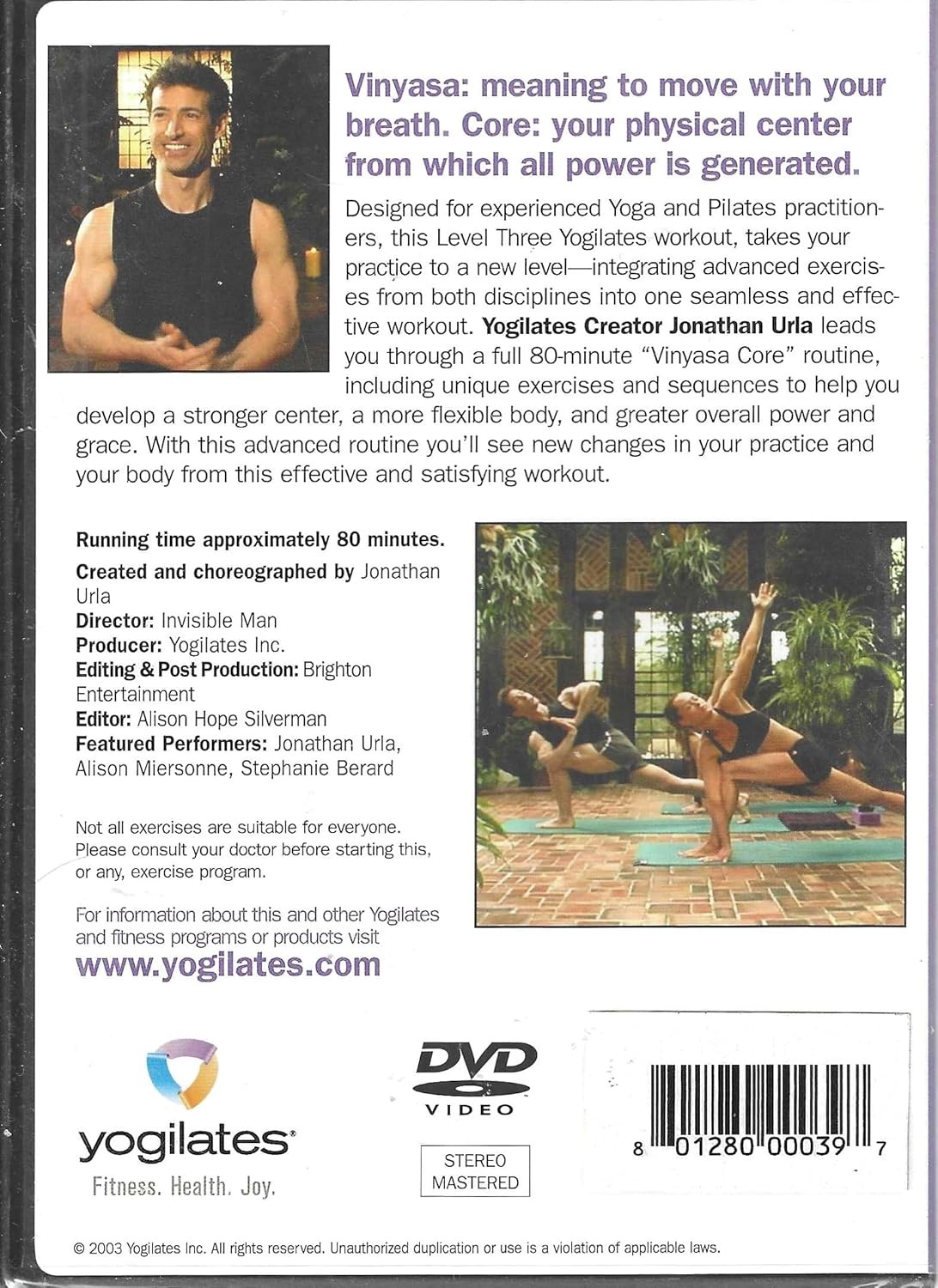 Descubre la fusión perfecta entre yoga y pilates con este DVD de nivel avanzado de Yogilates. Este programa de entrenamiento de 80 minutos está diseñado específicamente para practicantes experimentados que buscan llevar su práctica al siguiente nivel. La rutina 'Vinyasa Core' integra ejercicios avanzados de ambas disciplinas en una sesión fluida y efectiva, enfocándose en desarrollar un centro más fuerte, un cuerpo más flexible y mayor poder general. La sesión incorpora secuencias únicas que te ayudarán a moverte con tu respiración mientras fortaleces tu núcleo físico, de donde se genera toda la potencia. Esta rutina avanzada te permitirá ver nuevos cambios en tu práctica y en tu cuerpo. El DVD incluye instrucciones detalladas y demostraciones profesionales. Nota importante: consulta con tu médico antes de comenzar este o cualquier programa de ejercicios, ya que no todos los ejercicios son adecuados para todas las personas.