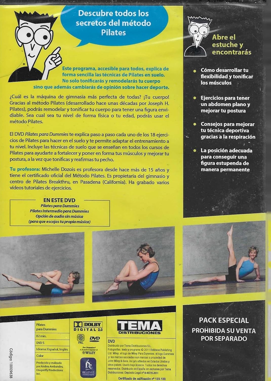 Descubre los secretos del método Pilates con este completo DVD diseñado para principiantes. El programa incluye 18 ejercicios fundamentales de suelo explicados paso a paso, perfectos para desarrollar tu flexibilidad y tonificar los músculos. Este DVD te guía a través de técnicas esenciales para conseguir un abdomen plano, mejorar tu postura y optimizar tu respiración durante la práctica. El contenido está estructurado para adaptarse a tu nivel, incluyendo tanto ejercicios básicos como rutinas de nivel intermedio. El DVD viene con opción de audio sin música para personalizar tu experiencia. Incluye instrucción detallada sobre la posición correcta para lograr resultados óptimos. El programa está presentado en español e inglés, con una duración de 82 minutos en formato DVD con calidad Dolby Digital 2.0. Ideal para quienes desean iniciarse en el método Pilates desde la comodidad de su hogar.