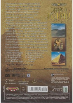 Misterios de Egipto es un fascinante documental en formato DVD que te transporta a una de las civilizaciones más extraordinarias de la historia. Filmado originalmente en IMAX, este espectacular viaje visual te permite experimentar la magia y majestuosidad del antiguo Egipto como nunca antes. Acompañados por Omar Sharif y Kate Maberly, descubrirás los secretos milenarios de esta gran civilización a través de impresionantes imágenes de monumentos colosales, las imponentes pirámides y el misterioso río Nilo con sus turbulentas caídas. El documental te lleva por el desierto, revelando la arquitectura monumental y el trabajo de los artesanos que crearon algunas de las maravillas del mundo antiguo. Explora las almas vivientes que durante siglos han guardado los secretos de las tumbas del faraón, incluyendo los tesoros de Tutankamón. Con una duración aproximada de 40 minutos en color, este DVD incluye audio en español e inglés con subtítulos opcionales. Una experiencia educativa y visualmente impresionante recomendada para todos los públicos que deseen conocer los misterios y maravillas del antiguo Egipto.