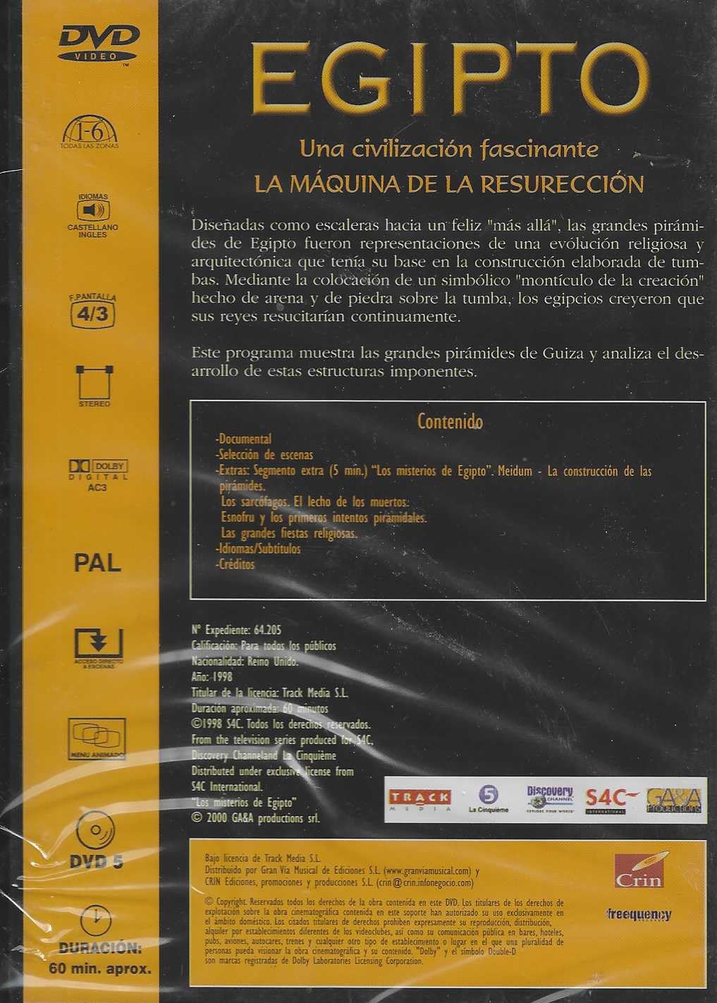 Este fascinante DVD documental te transporta al corazón de una de las civilizaciones más enigmáticas de la historia: el Antiguo Egipto. 'La Máquina de la Resurrección' explora los misterios detrás de las majestuosas pirámides de Guiza, revelando cómo estas monumentales estructuras fueron mucho más que simples tumbas. Descubre la profunda conexión entre la arquitectura egipcia y las creencias religiosas sobre la vida después de la muerte. El programa analiza en detalle la construcción de estas imponentes pirámides y examina el simbolismo del 'montículo de la creación' hecho de arena y piedra. Aprende sobre los sarcófagos, el lecho de los muertos, la esfinge y los primeros intentos piramidales que marcaron la evolución de esta civilización. Con una duración aproximada de 60 minutos, este documental incluye selección de escenas, extras y subtítulos en varios idiomas. Perfecto para entusiastas de la historia antigua y aquellos fascinados por los secretos del Antiguo Egipto. Formato PAL, sistema de audio estéreo Dolby Digital AC3.