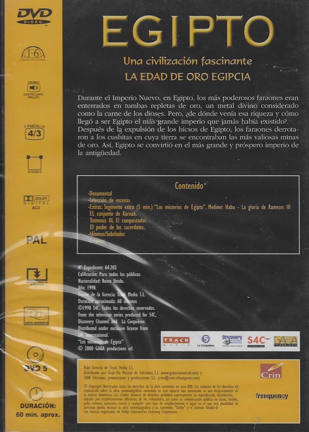 Sumérgete en los misterios del antiguo Egipto con este fascinante documental en DVD que explora la Edad de Oro Egipcia. Durante el Imperio Nuevo, los poderosos faraones eran enterrados en tumbas repletas de oro, un metal divino considerado como la carne de los dioses. Este documental revela cómo, tras la expulsión de los hicsos, los faraones derrotaron a los cushitas y conquistaron las valiosas minas de oro, convirtiendo a Egipto en el más grande y próspero imperio de la antigüedad. Con una duración aproximada de 60 minutos, este DVD incluye contenido documental, selección de escenas y un segmento extra sobre los misterios de Egipto, Medinet Habu, la gloria de Ramsés III, el conjunto de Karnak, Tutmosis III y el poder de los sacerdotes. Formato PAL con audio en castellano e inglés, subtítulos en varios idiomas y pantalla 4:3. Una experiencia educativa perfecta para entusiastas de la historia y las civilizaciones antiguas que desean descubrir los secretos de una de las culturas más fascinantes del mundo.
