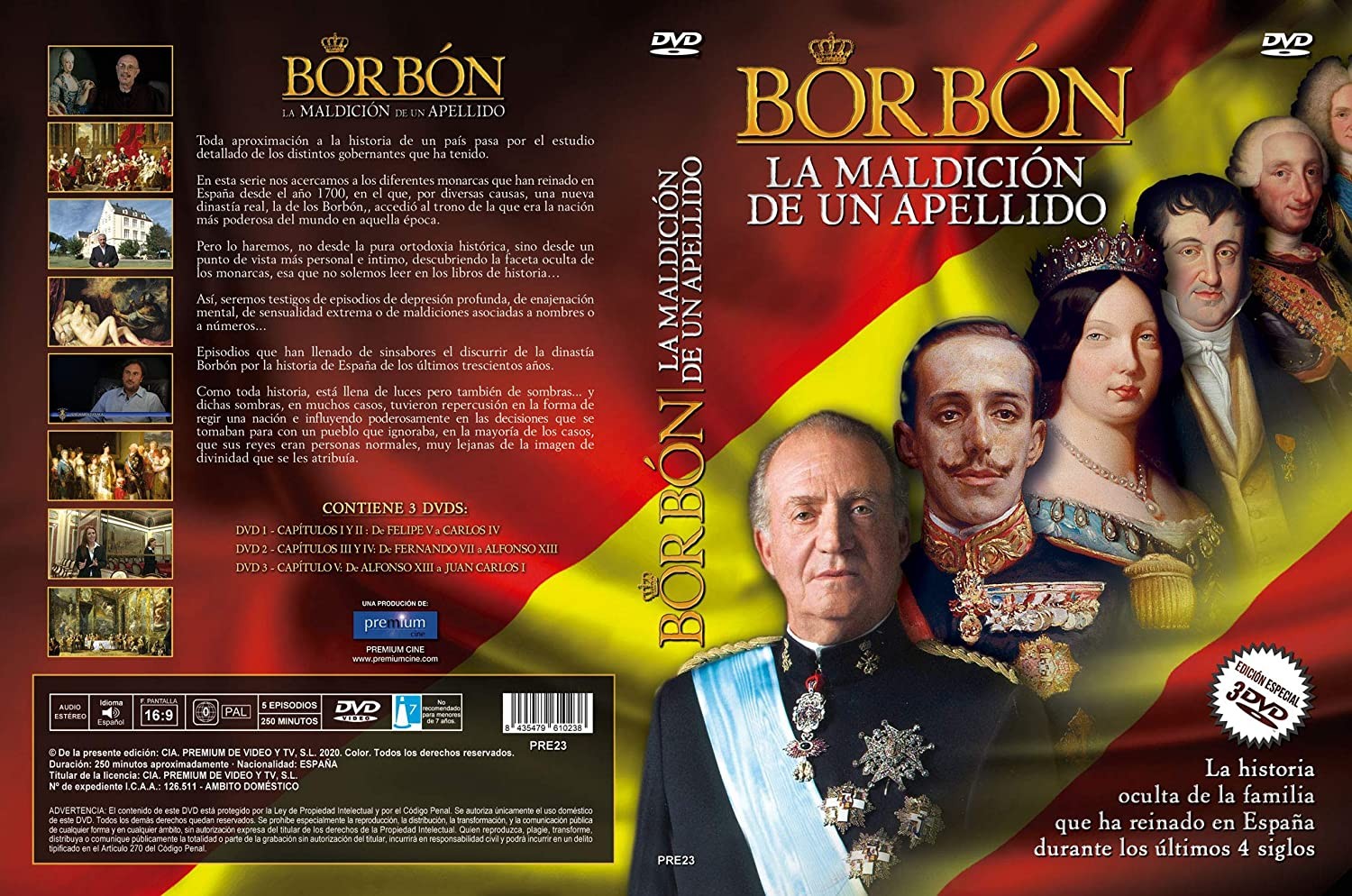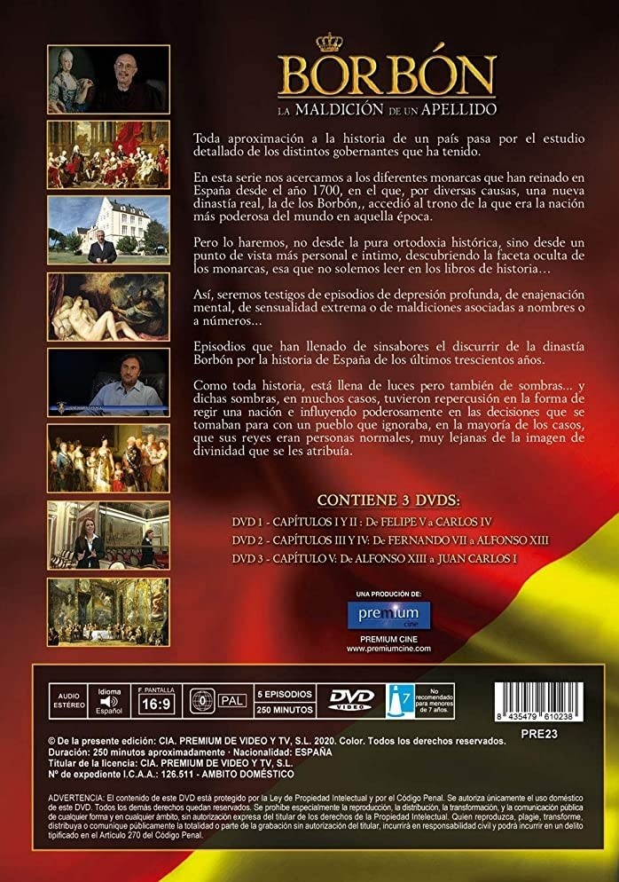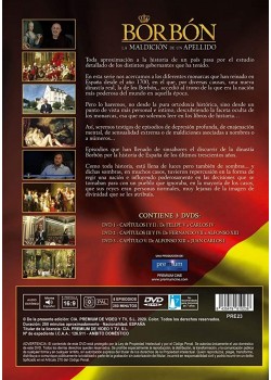 https://back.dvdstorespain.es/es/mejores-documentales-en-blu-ray-y-dvd/86689-borbon-la-maldicion-de-un-apellido-dvd-2014-8435479610238.html86689Borbón: La Maldición de un Apellido [DVD] (2014)Miniserie documental de 5 episodios. Analiza a los diferentes monarcas que ha tenido España desde el año 1700, en el que, por diversas causas, una nueva dinastía real, Los Borbones, accedió al trono de la nación más poderosa del mundo en aquel momento. Lo hace desde el punto de vista más personal e íntimo, descubriendo la faceta oculta de los monarcas.https://dvdstorespain.es/438517-home_default/borbon-la-maldicion-de-un-apellido-dvd-2014.jpg9.0083instockResearch Entertainment9.00839.0083002020-10-21T00:36:13+0200/Inicio/Inicio/DVD/Inicio/Nuevos/Inicio/Mejores Documentales en Blu-Ray y DVD/Inicio/VELADA SP 70/Inicio/VELADA DE 100/Inicio/VELADA FR 100/Inicio/VELADA IT 100