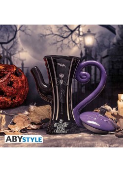 ¿Te gustan las creaciones que salen de las góticas mentes de Tim Burton y Henry Sellick? ¿Te gusta el té? Si tu respuesta a ambas preguntas es afirmativa, ¡enhorabuena! Abystyle ha creado una espectacular tetera basada en la película de stop-motion producida por el estudio Disney “Pesadilla Antes de Navidad” (“Nightmare Before Christmas”). Esta tetera es de cerámica y tiene una capacidad de unos 550 mls. No es apta para lavavajillas ni microondas. Su diseño es ligeramente asimétrico, rindiendo homenaje a la línea de diseño que tiene la propia película. Así, la tetera parece que ha salido de ella. Tiene tapa y viene en una caja temática decorada con motivos de la película.