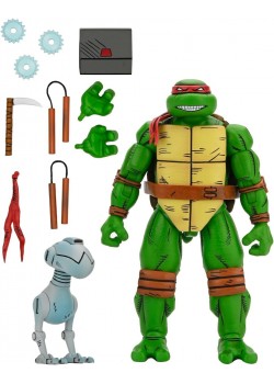 Dreadmon es un personaje memorable y animalesco de las Tortugas Ninja (TMNT). La figura de Dreadmon de TMNT nos la trae Neca y las líneas Reel Toys y Adventure Series. Con su apariencia de hombre lobo, colmillos afilados y una piel peluda, este misterioso cazador de tesoros y aliado ocasional de las tortugas es una adición única y escalofriante a la colección de figuras TMNT, capturando su aura de criatura de la noche y aventurero en una pieza de colección única. Incluye accesorios como dos bananas, una lata, insecto, frutas, dos pares de manos adicionales y una expresión de ojos adicional. Mide unos 18 cms y está hecho de PVC.