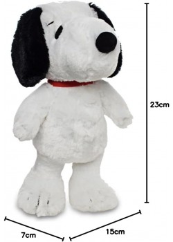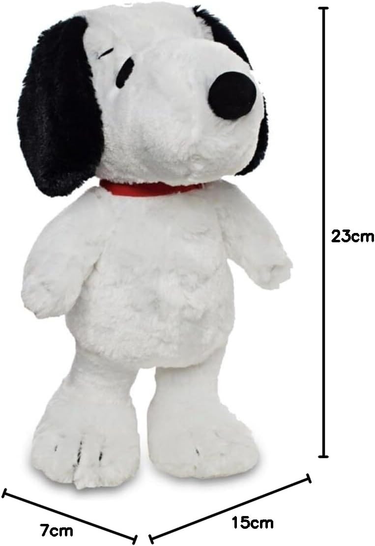 A Snoopy le gusta de vez en cuando levantarse del tejado de su icónica caseta roja para irse a explorar nuevos amigos y nuevos lugares. ¡Tu casa puede ser el nuevo sitio favorito de Snoopy! Llévate este adorable peluche de 36 cms hecho de suaves fibras de poliéster que imitan el pelo del famoso can. Snoopy tiene la forma perfecta para que puedas ponerle de pie en tu cama o sofá. Podrás abrazarle mientras te echas unas siestas dignas del mismísimo Snoopy cuando está tumbado al sol. Es un peluche de licencia oficial que recrea fielmente el famoso personaje de las viñetas y que ha sido creado por la marca referente en peluches: Grupo Moya.