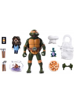 Leonardo, el ninja de espadas por arma y antifaz azul, llega a tu colección de figuras con la versión de The Loyal Subjects del personaje. Esta línea de figuras trae a las tortugas con un diseño inspirado en la versión de la serie de televisión de Nickelodeon. Incluye accesorios como dos pares de manos intercambiables, cabeza intercambiable, dos espadas, dos trozos de antifaz con efecto de estar al viento y efecto de ataque translúcido. Mide unos 13 cms y es un artículo de licencia oficial de Nickelodeon y de las TMNT. ¿Listo para proteger la ciudad con Leonardo?