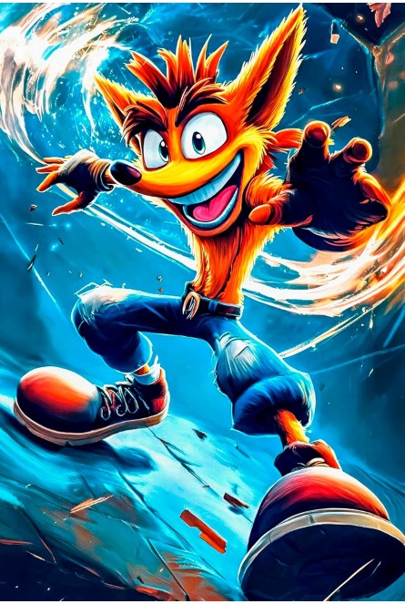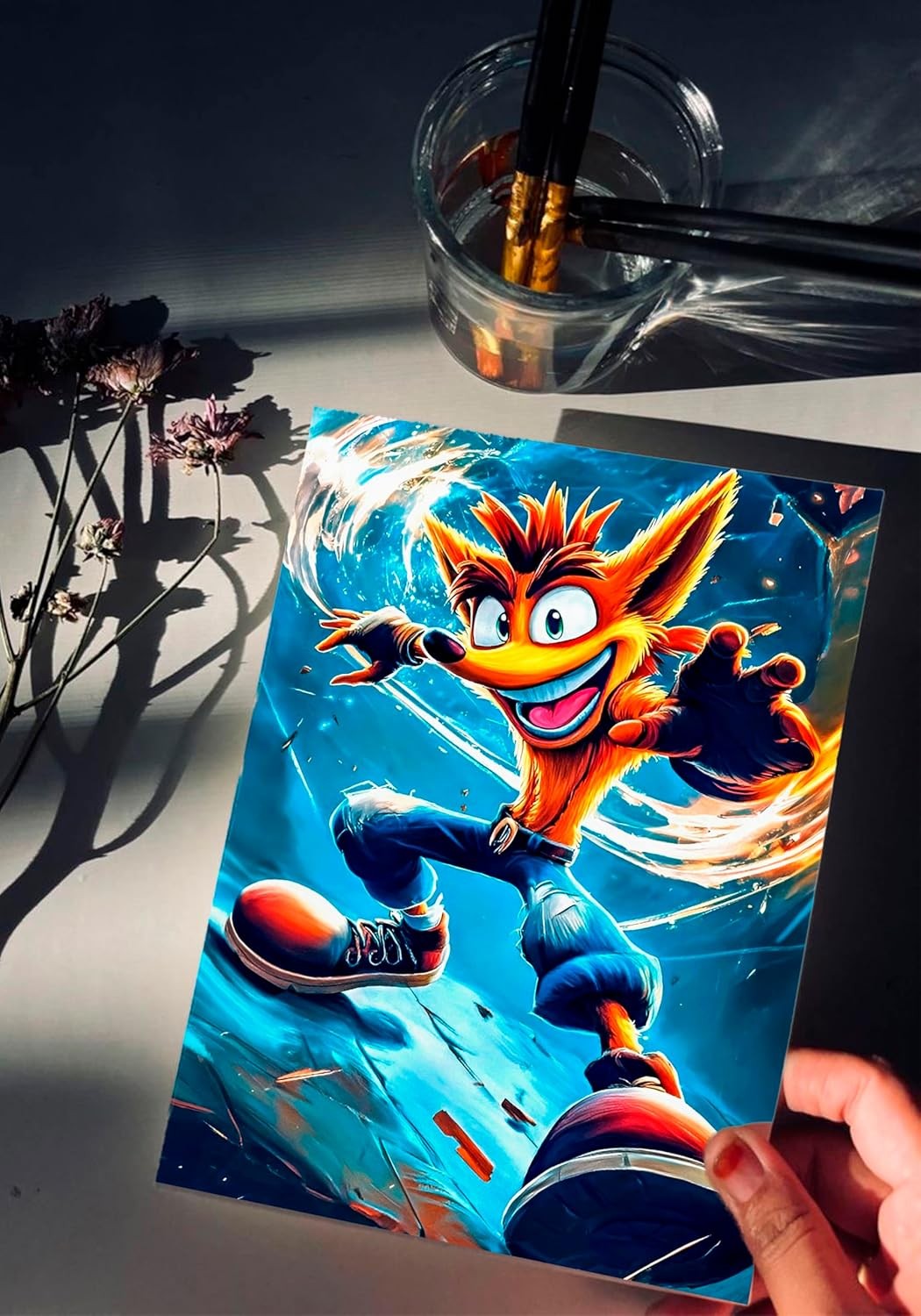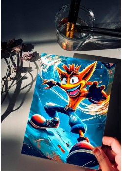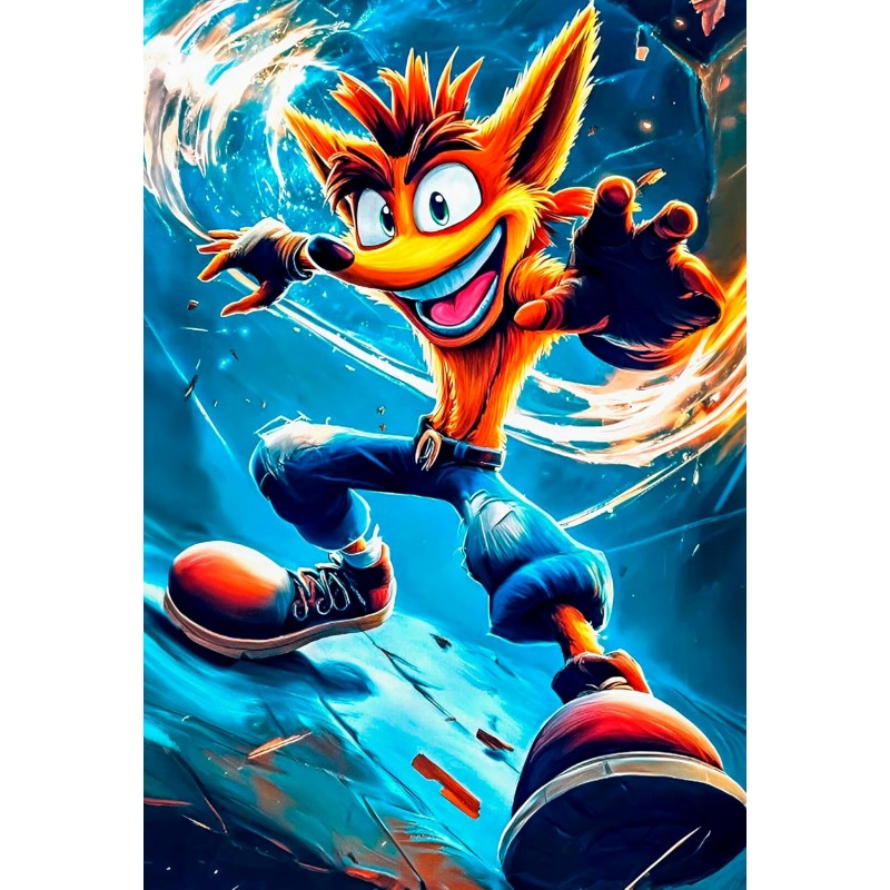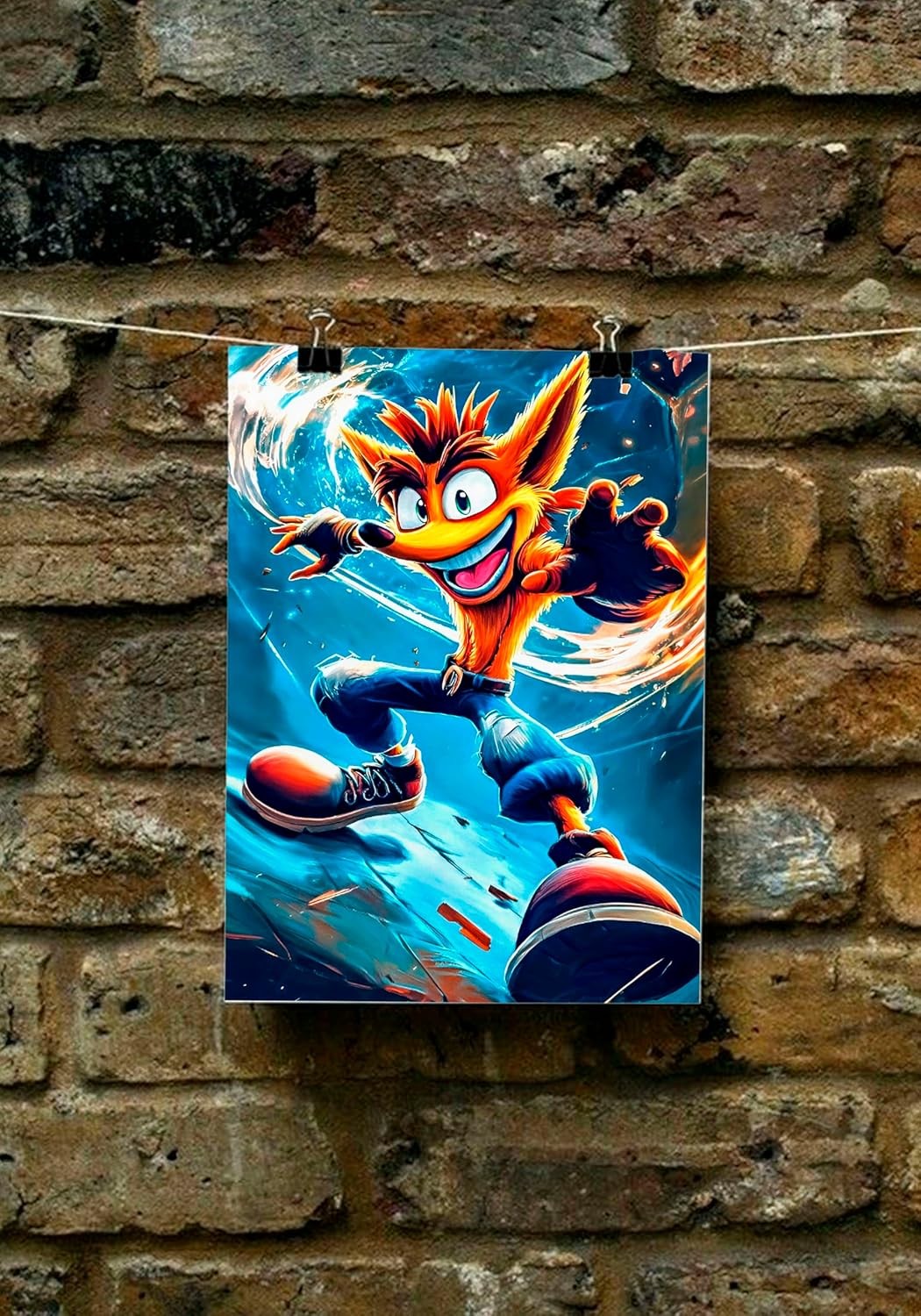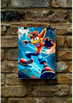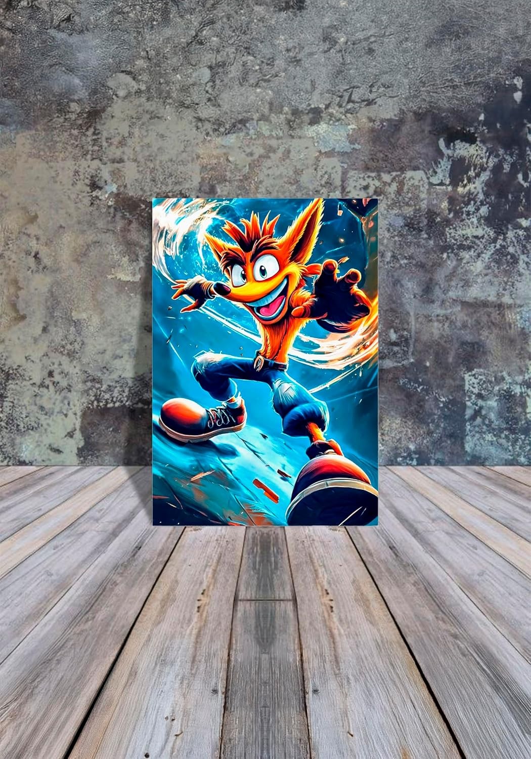 Crash Bandicoot saltando a tu colección en esta lámina de aluminio premium con acabado brillante de alta calidad. Cada color y detalle resaltan para que tengas a este clásico icónico siempre presente. ¡Una pieza que ningún fan debe dejar pasar!"