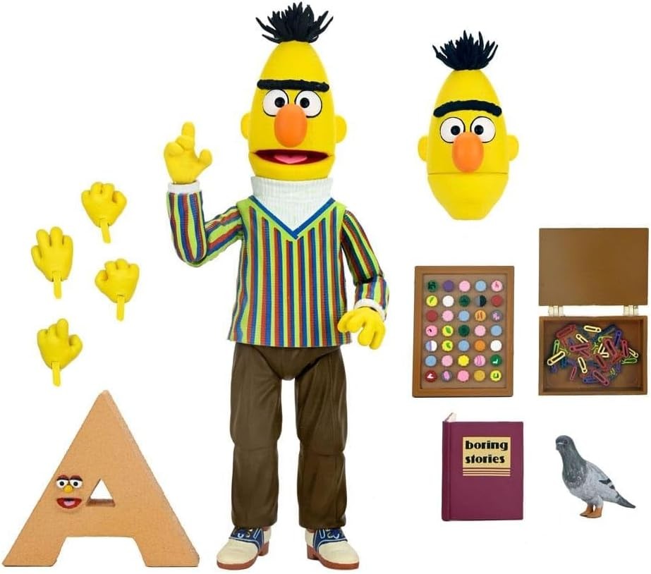 La Figura Ultimate Blas Barrio Sésamo Articulada 18 cms es una auténtica joya para los fans de la inolvidable serie infantil. Producida por NECA dentro de la prestigiosa línea Reel Toys, esta figura captura con gran fidelidad la personalidad ordenada y meticulosa de Blas, el eterno compañero de aventuras de Epi. Con una altura de 18 centímetros y múltiples puntos de articulación, Blas puede adoptar diferentes poses, ideales para recrear sus momentos más graciosos o sus gestos característicos de paciencia infinita. Además, viene acompañada de un excelente conjunto de accesorios que reflejan su mundo particular: una cabeza intercambiable con expresión alternativa, cuatro manos intercambiables, una paloma como su inseparable mascota, la letra A, una cajita con clips, otra con chapas y un libro, perfecto para representar su faceta más estudiosa y organizada. La figura se presenta en una caja con tapa abatible decorada con imágenes del personaje, ideal para coleccionistas o para exponer sin necesidad de abrirla. La Figura Ultimate Blas de NECA es un homenaje entrañable a uno de los dúos más queridos de la televisión, una pieza imprescindible para quienes crecieron con la magia, el humor y las enseñanzas de Barrio Sésamo.