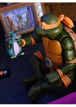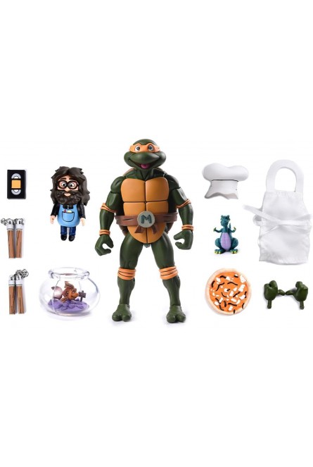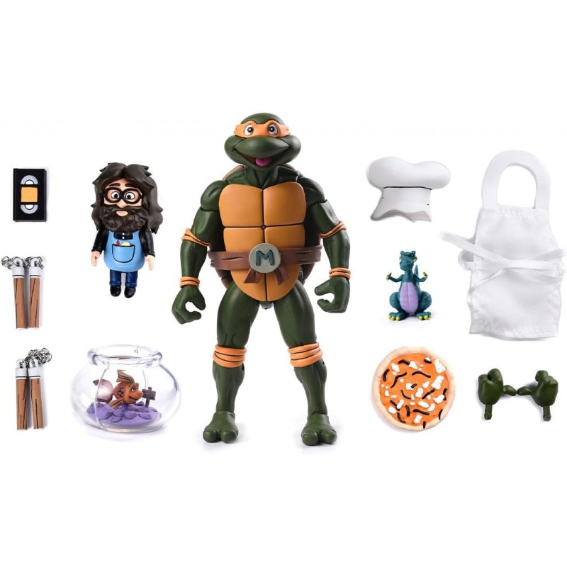 La fiesta llega a la guarida con la Figura Ultimate Michelangelo Is A Partying Dude TMNT Las Tortugas Ninja Articulada de 18 cms, una de las versiones más divertidas y carismáticas del miembro más desenfadado del equipo. Con su inconfundible actitud positiva y su espíritu fiestero, Michelangelo demuestra que también se puede ser un gran ninja mientras se disfruta de la vida al máximo. Esta figura captura a la perfección su personalidad alegre y despreocupada, con un diseño fiel al universo clásico de las Tortugas Ninja y un estilo que transmite movimiento, humor y energía. Gracias a su cuerpo totalmente articulado, podrás recrear escenas de acción, momentos de entrenamiento o situaciones cotidianas llenas de caos y buen rollo en la guarida. El set de accesorios es tan completo como divertido. Incluye dos manos intercambiables para variar poses y expresiones, dos nunchakus listos para el combate, un VHS que refuerza su esencia retro, un gorro de cocinero para sus momentos más culinarios, una porción de pizza imprescindible en cualquier reunión ninja y tres simpáticas mascotas que añaden un toque único y coleccionable. Perfecta para fans de TMNT y amantes de las figuras con personalidad, esta versión de Michelangelo es pura diversión en formato coleccionista. Añádela a tu colección y deja que el ninja más fiestero ponga ritmo, humor y sabor a pizza en tu estantería.