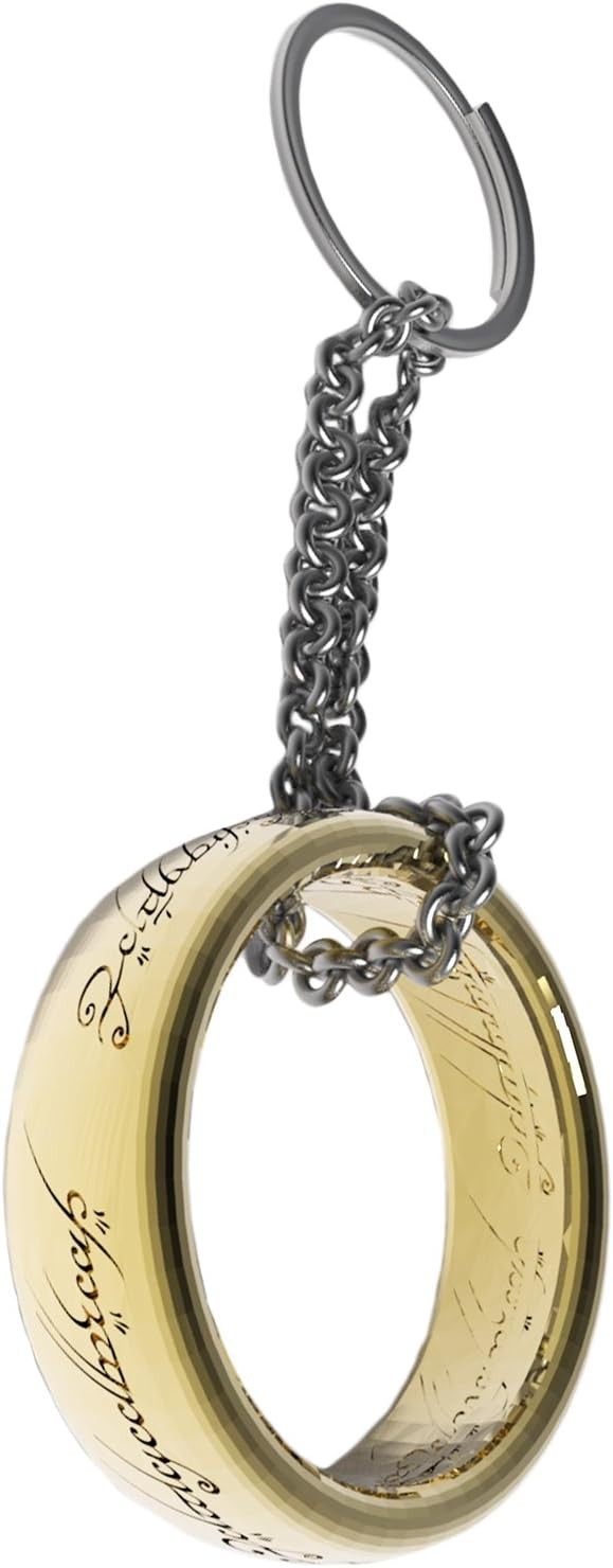 Un llavero para gobernarlos a todos… y atarlos en tu bolsillo. El Llavero Anillo Único de El Señor de los Anillos es mucho más que un accesorio: es un símbolo eterno del poder, la tentación y la épica que marcó a generaciones enteras. Inspirado en el legendario Anillo de la saga The Lord of the Rings, este llavero reproduce el diseño del Anillo Único con su característico acabado metálico y las inscripciones élficas que lo convierten en una pieza inconfundible para cualquier amante de la Tierra Media. Compacto pero con gran presencia, combina elegancia y resistencia para acompañarte en el día a día. Fabricado en metal duradero, es perfecto para tus llaves, mochila o incluso como detalle decorativo en tu escritorio friki. Su brillo dorado evoca ese poder hipnótico que todos recordamos… pero tranquilo, este solo controla tus llaves (de momento). Si eres de los que sienten escalofríos cada vez que escuchan el verso del Anillo, este accesorio es para ti. Un pequeño objeto con una carga simbólica gigantesca. Porque hay piezas que no solo se llevan… se veneran.