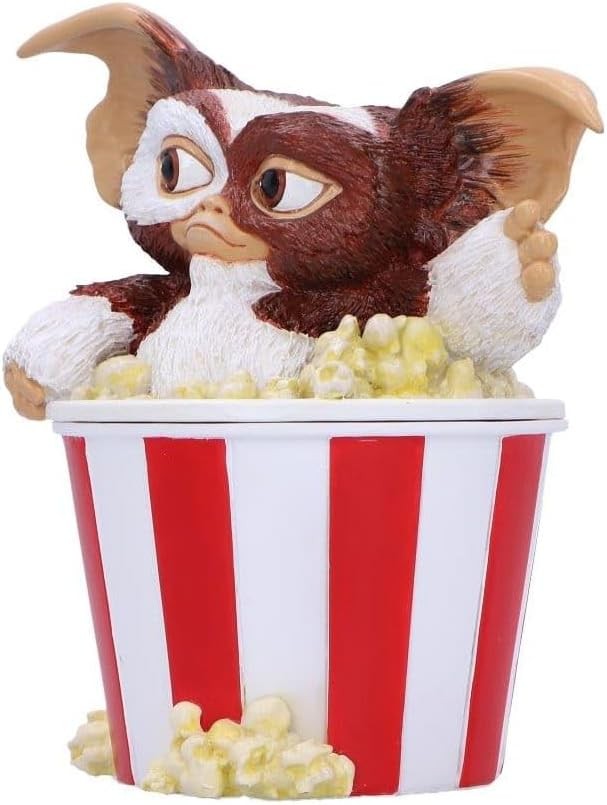 ¿Amante de los ochenta? ¿Y del cine? Pues entonces eres como Gizmo, el Mogwai que nos robó el corazón. Culpa de Spielberg, Dante y Columbus. Este bote con tapa, que recrea un cubo de palomitas con Gizmo saliendo por las palomitas, está hecho por los artistazos de Nemesis Now, la legendaria marca inglesa. Está pintado a mano, con un cuidado excelso y una evocación total de la saga cinematográfica. Es una pieza para coleccionistas que quieran decorar sus casas con un toque de color, diversión y nostalgia.