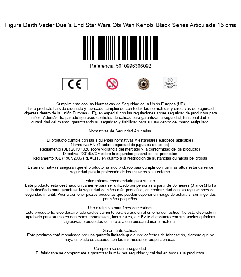 Revive uno de los momentos más intensos del universo Star Wars con la Figura Darth Vader Duel’s End de la serie Obi-Wan Kenobi, una pieza imprescindible para fans y coleccionistas. Esta figura de 15 cm captura el aspecto desgastado y poderoso de Darth Vader tras su épico enfrentamiento, reflejando toda la carga emocional y visual de este icónico duelo. Diseñada con gran nivel de detalle dentro de una línea articulada, permite recrear poses dinámicas y escenas clave, destacando tanto en exposición como en juego. Su acabado muestra el lado más imponente y oscuro del personaje, convirtiéndola en una pieza con mucha presencia en cualquier colección. Incluye su característico sable de luz rojo, imprescindible para representar todo el poder del Lado Oscuro y recrear combates llenos de intensidad. Además, esta versión del personaje está basada en su aparición en la serie Obi-Wan Kenobi, donde Darth Vader es interpretado por Hayden Christensen, retomando uno de los roles más icónicos de la saga. Una figura ideal para fans de Star Wars que buscan capturar la esencia de uno de los villanos más legendarios del cine en uno de sus momentos más memorables.