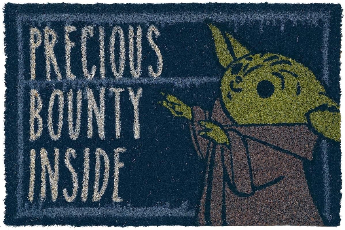 Da la bienvenida a tu hogar con el ser más adorable de la galaxia gracias al Felpudo Precious Bounty Inside The Mandalorian Star Wars de 60 x 40 cm. Inspirado en el universo de la serie, este felpudo presenta una ilustración en estilo cartoon de Grogu que conquistará a cualquiera que cruce tu puerta. Su diseño combina perfectamente ternura y estética friki, convirtiéndolo en una pieza ideal para fans de Star Wars que quieren añadir un toque especial y reconocible a la entrada de su casa. Es perfecto tanto para interiores como exteriores, aportando personalidad desde el primer paso. Está fabricado con fibra de coco en la superficie, ideal para retener la suciedad del calzado, y cuenta con una base de PVC antideslizante que garantiza estabilidad y seguridad en su uso diario. Con unas medidas de 60 x 40 cm, ofrece el tamaño perfecto para cumplir su función práctica sin renunciar al estilo. Ya sea como elemento decorativo o funcional, este felpudo es una opción ideal para completar tu hogar con un guiño a The Mandalorian. Un regalo perfecto para fans que saben que, en esta casa… hay una preciosa recompensa en el interior.