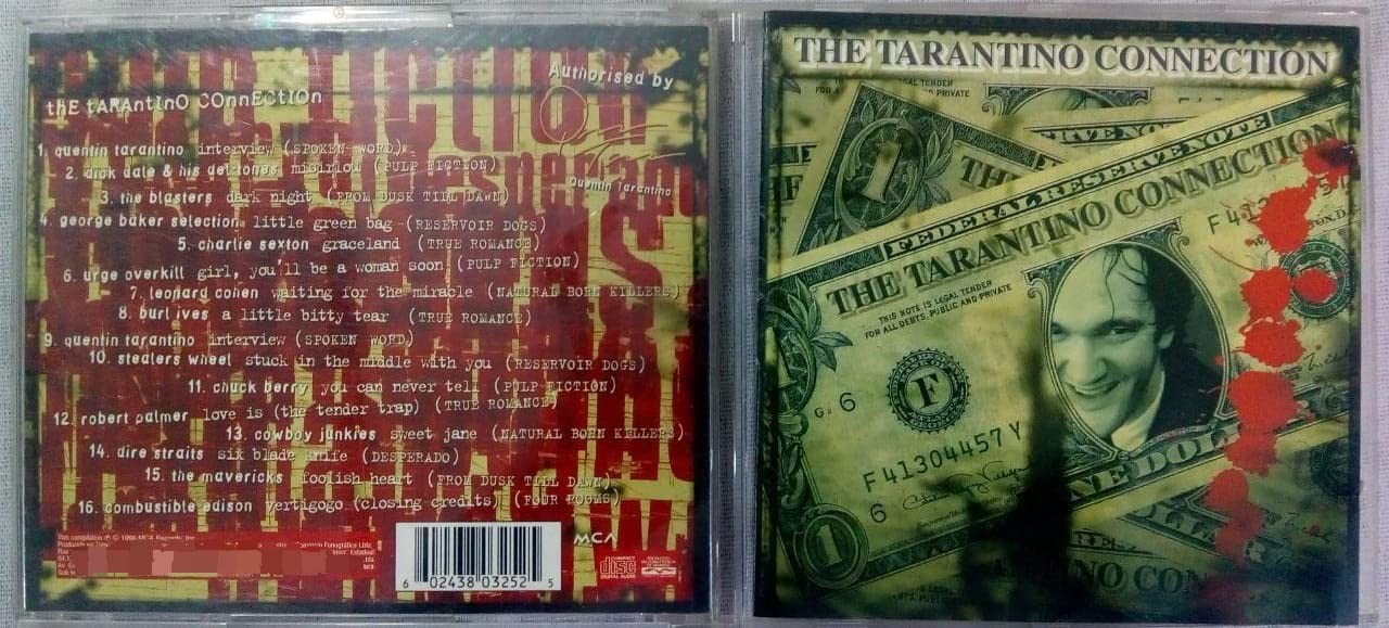 El álbum también presenta fragmentos de entrevistas con el propio Tarantino, aportando un toque de autenticidad y conexión directa con su mente creativa. Canciones de True Romance, Natural Born Killers, Desperado o From Dusk Till Dawn completan un recorrido musical por el universo de un autor que revolucionó la cultura pop de los 90. Editado por MCA Records, con una portada provocadora que mezcla billetes y sangre —un símbolo perfecto del estilo Tarantino—, este CD es mucho más que una banda sonora: es una cápsula del espíritu cinematográfico de una era, un tributo musical al genio del diálogo y la violencia estilizada.