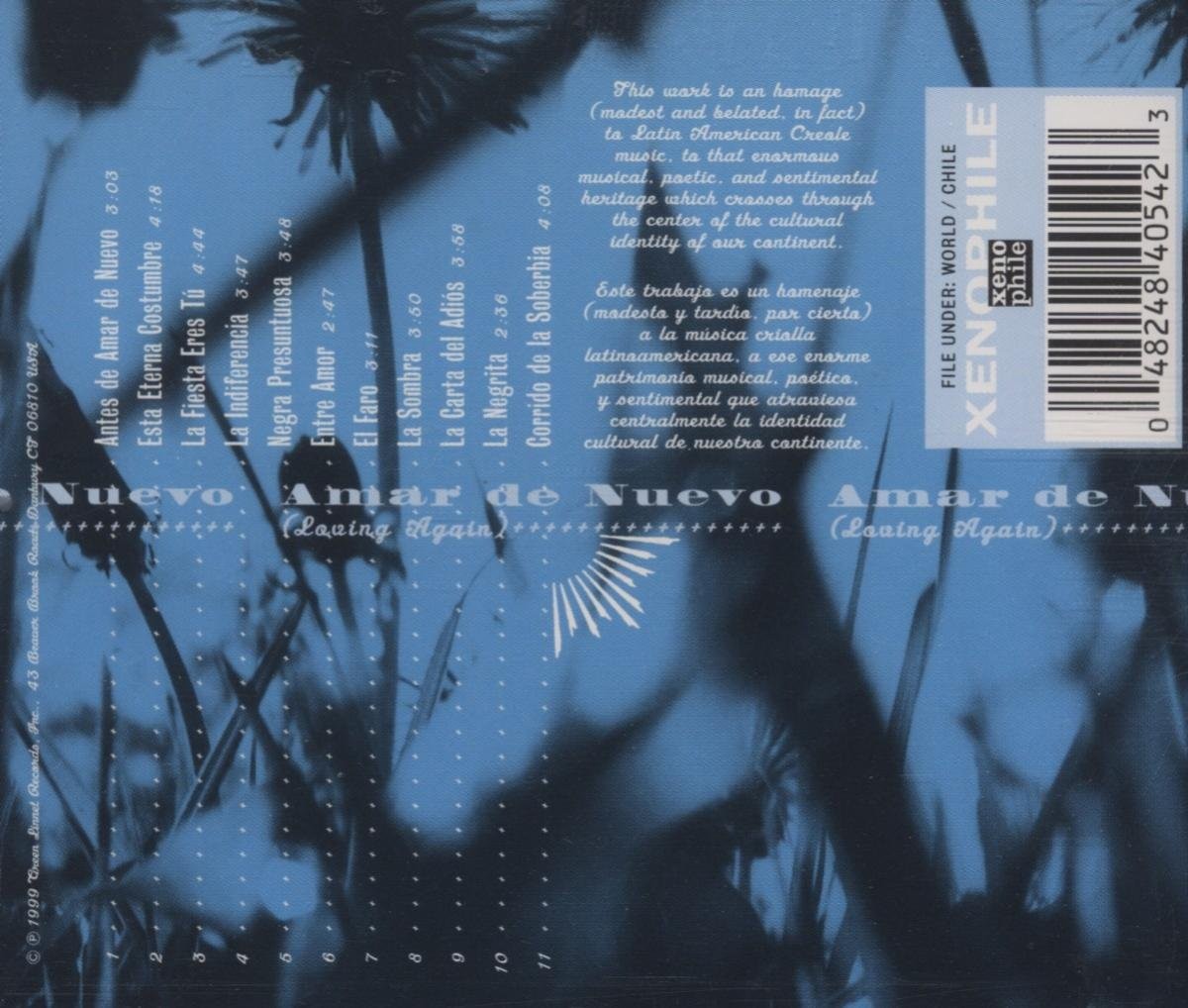 La banda más conocida de Chile, Inti-Illimani ha encantado al público de todo el mundo durante las tres décadas. Su música está alink entre pueblo y gente, vivificada en el movimiento Nueva Cancion, un movimiento que ayudaron a fundar. Su última grabación, Amar de Nuevo, está inspirada en la canción criolla, la enorme herencia musical, poética y sentimental que recorre la piel cultural de América Latina. El set de 11 canciones contiene melodías folclóricas caseras, boleros y valses peruanos, la mayoría compuestos por el guitarrista/cantante Horacio Salinas y el poeta/letcista Patricio Manns.