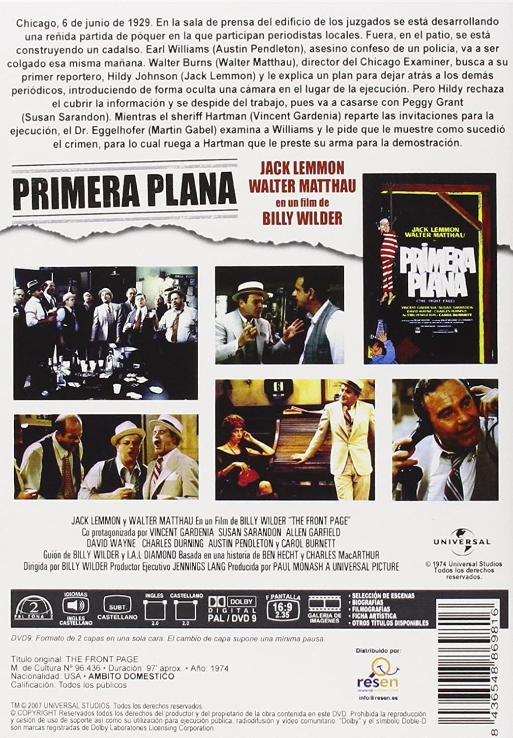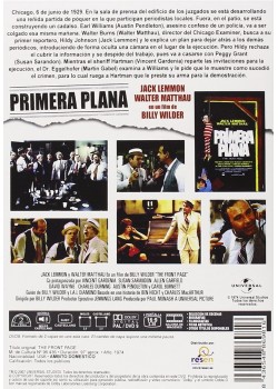 https://back.dvdstorespain.es/es/peliculas/10902-primera-plana-italia-dvd--8436548869816.html10902PRIMERA PLANA (DVD)Chicago 1929. Ewan Williams, convicto del asesinato de un policía, espera en la cárcel el momento de su ejecución. Mientras tanto, en la sala de prensa del Tribunal Supremo, un grupo de periodistas espera el indulto o la confirmación de la sentencia. Hiddy Johnson, el cronista de sucesos del Chicago Examiner, que tendría que cubrir la información, está a punto de contraer matrimonio y abandonar su trabajo; pero Walter Burns, el maquiavélico director del periódico, empeñado en retenerlo, tratará de impedir su boda por todos los medios.https://dvdstorespain.es/770195-home_default/primera-plana-italia-dvd-.jpg7.2727instock7.27277.2727002015-04-20T18:25:22+0200/Inicio/Inicio/DVD/Inicio/Películas/Inicio/Nuevos