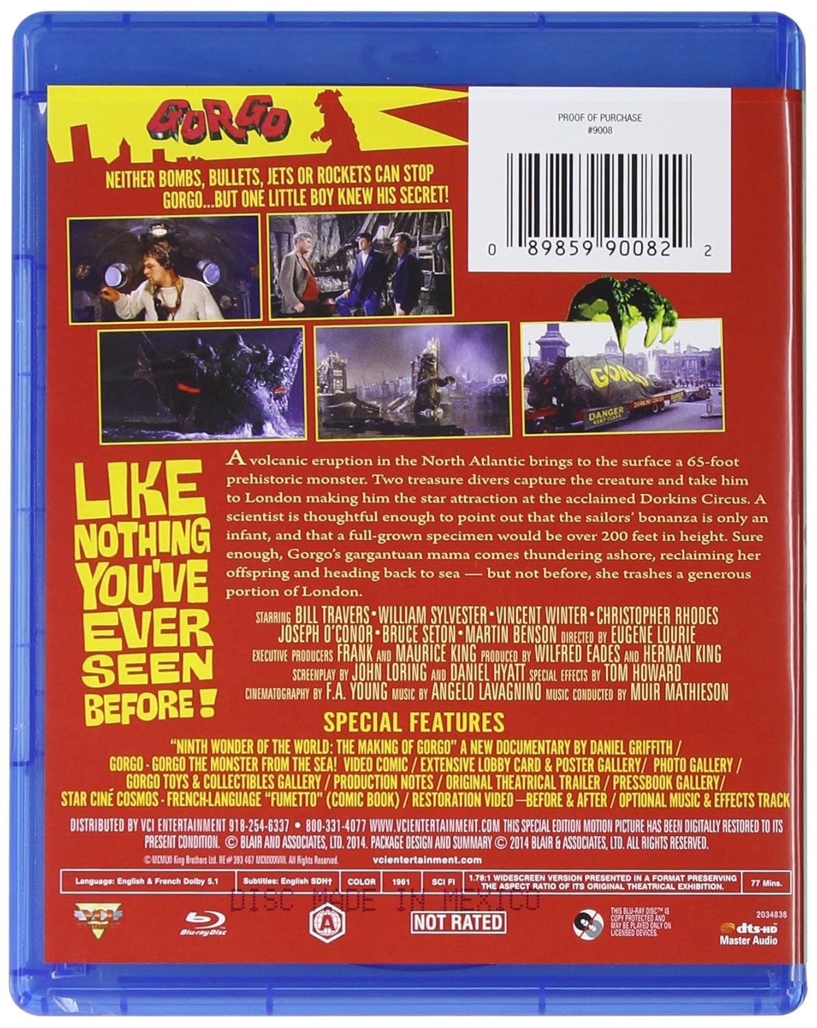 A volcanic eruption in the North Atlantic brings to the surface a 65-foot prehistoric monster. Two treasure divers capture the creature and take him to London where he made the star attraction at a circus. A scientist is thoughtful enough to point out that the sailors' bonanza is only an infant, and that a full-grown specimen would be over 200 feet in height. Sure enough, Gorgo's mama comes thundering ashore, reclaims her offspring and heads back to sea - but not before, she trashes a generous portion of London.
