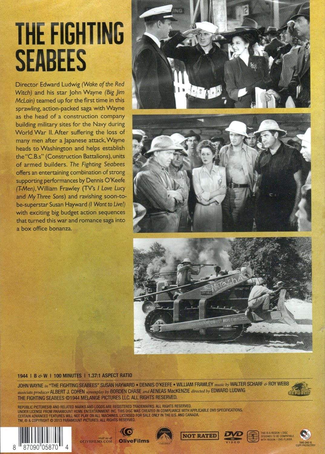 Director Edward Ludwig (Wake of the Red Witch) and His Star John Wayne (Big Jim McLain) Teamed Up for the First Time in This Sprawling, Action-Packed Saga with Wayne As the Head of a Construction Company Building Military Sites for the Navy During World War II. After Suffering the Loss of Many Men After a Japanese Attack, Wayne Heads to Washington and Helps Establish the "C.B.'S" (Construction Battalions), Units of Armed Builders. The Fighting Seabees Offers An Entertaining Combination of Strong Supporting Performances By Dennis Okeefe (T-Men), William Frawley (TVS I Love Lucy and My Three Sons) and Ravishing Soon-To-Be-Superstar Susan Hayward (I Want to Live!) with Exciting Big Budget Action Sequences That Turned This War and Romance Saga Into a Box Office Bonanza.