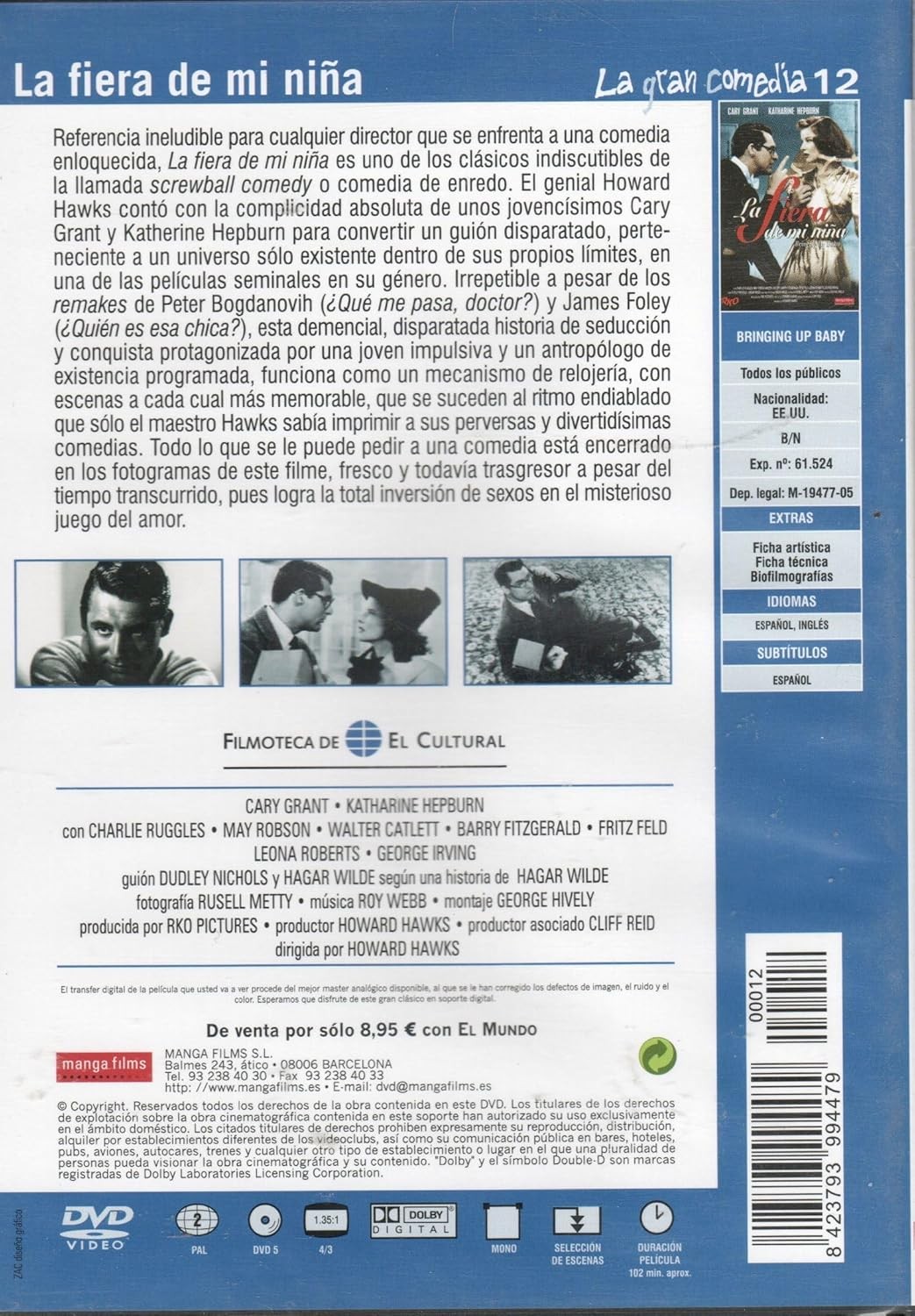 https://back.dvdstorespain.es/es/peliculas/123984-la-fiera-de-mi-nina-dvd-edicion-la-gran-comedia-dvd--0605848382259.html123984La Fiera De Mi Niña [DVD] (1938) Bringing Up BabyDavid Huxley (Cary Grant) es un paleontólogo tímido y despistado que está a punto de acabar la laboriosa reconstrucción del esqueleto de un brontosaurio, del que sólo le falta una clavícula intercostal. También está a punto de casarse con su anodina secretaria. En un partido de golf con el abogado de una solterona millonaria, potencial mecenas del museo para el que trabaja, Huxley conoce a Susan Vance (Katharine Hepburn), una joven adinerada y caprichosa que lo manipulará para que no lleve a cabo ninguno de sus dos proyectos. https://dvdstorespain.es/780478-home_default/la-fiera-de-mi-nina-dvd-edicion-la-gran-comedia-dvd-.jpg7.2727instockResearch7.27277.2727002025-06-25T18:45:38+0200/Películas