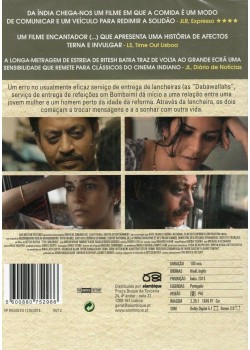 Descubre 'A Lancheira', una cautivadora película india dirigida por Ritesh Batra que ha conquistado los prestigiosos festivales de Cannes, Toronto y Sundance. Esta conmovedora comedia sentimental, estrenada en 2013, narra una historia única que se desarrolla en las bulliciosas calles de Bombay. Con una duración de 100 minutos, la película está disponible en Hindi e Inglés, con subtítulos en portugués. Presentada en formato DVD con una calidad de imagen 2.35:1 y sonido Dolby Digital 5.1, esta joya cinematográfica explora cómo un simple error en el sistema de entrega de almuerzos de Mumbai ('dabbawallahs') desencadena una extraordinaria conexión entre dos personas. La película ha recibido elogios de prestigiosas publicaciones como Le Nouvel Observateur, Variety y The Hollywood Reporter, que destacan su encanto, emotividad y capacidad para tocar el corazón. Una historia donde la comida se convierte en un vehículo de comunicación y redención, presentada en un formato técnico de alta calidad para disfrutar en casa.