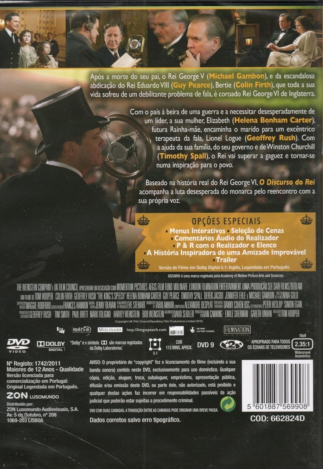 Descubre 'O Discurso do Rei', la aclamada película ganadora de 4 premios Oscar, incluyendo Mejor Película y Mejor Director. Esta cautivadora historia verdadera, disponible en DVD con audio en inglés y subtítulos en portugués, sigue la extraordinaria travesía de un monarca que debe superar su impedimento del habla en una época crucial. La película cuenta con un elenco estelar y presenta una narrativa conmovedora sobre superación personal y amistad improbable. El DVD incluye características especiales como menús interactivos, selección de escenas, comentarios de audio del director, y un documental sobre la inspiradora historia detrás de la película. Con una duración aproximada de 113 minutos, esta versión distribuida por ZON Lusomundo ofrece una experiencia cinematográfica de alta calidad en formato DVD 9 con sonido Dolby Digital 5.1. Clasificada para mayores de 12 años, esta obra maestra del cine británico combina magistralmente el drama histórico con momentos de humor y emoción.
