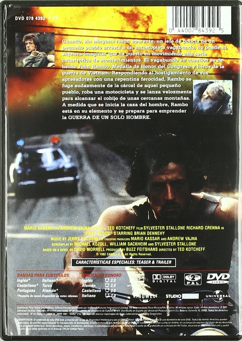Cuando, sin ninguna razón aparente, un jefe de policía de un pequeño pueblo arresta a un autostopista vagabundo, no puede ni siquiera imaginar que ha puesto en movimiento una serie catastrófica de acontecimientos. El vagabundo en cuestión es de hecho John Rambo, Medalla de Honor del Congreso y héroe de la guerra de Vietnam. Respondiendo al hostigamiento de sus apresadores con una repentina ferocidad, Rambo se fuga audazmente de la cárcel y se lanza velozmente para alcanzar el cobijo de unas cercanas montañas. A medida que se inicia la caza del hombre, Rambo está en su elemento y se prepara para emprender la GUERRA DE UN SOLO HOMBRE.