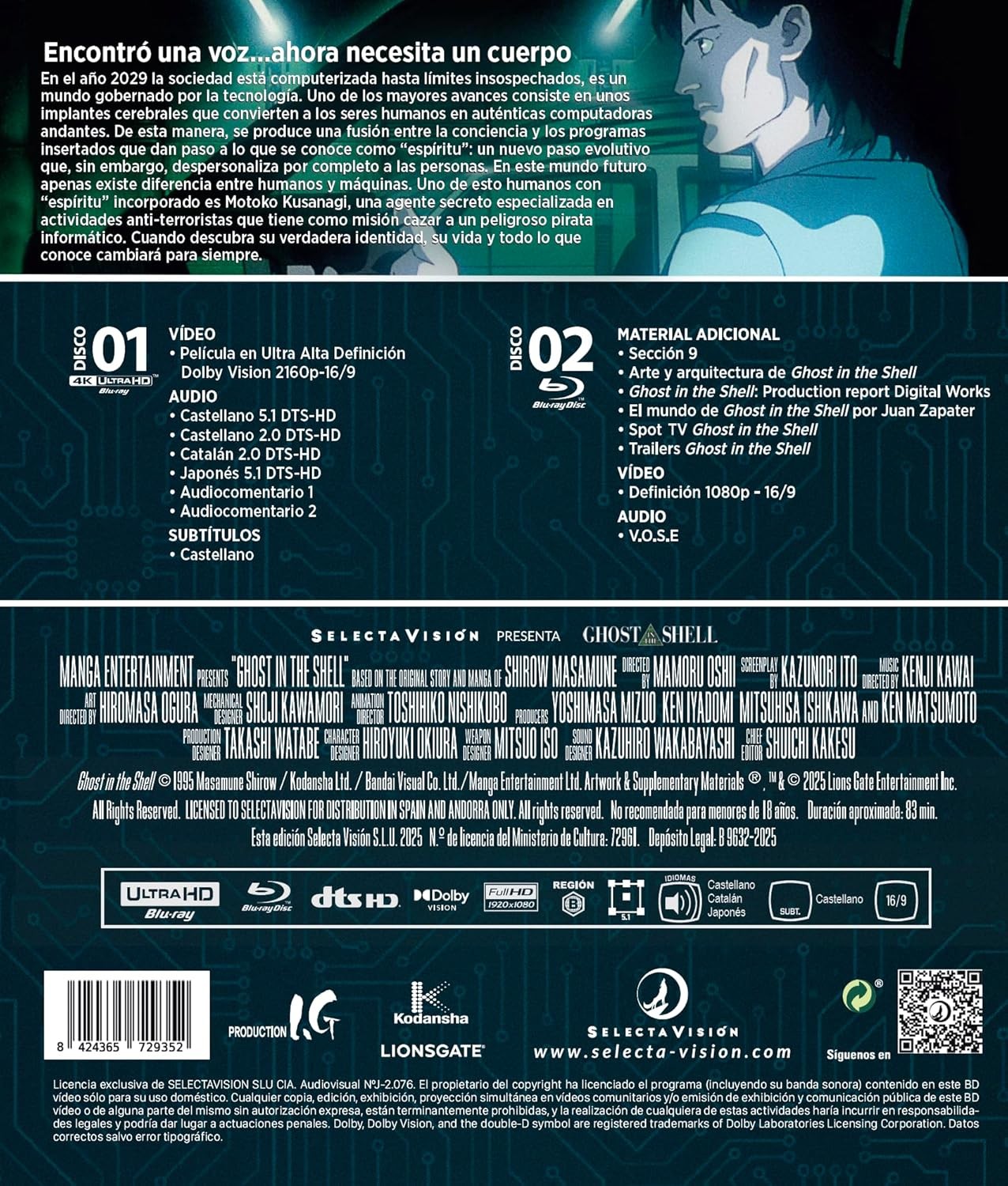 https://back.dvdstorespain.es/es/peliculas/126645-ghost-in-the-shell-4k-bluray-edicion-coleccionista-pelicula-blu-ray--8424365729352.html126645Ghost In The Shell (Edición Coleccionista Película) [4K UHD, Blu-ray] (1995) Kokaku Kidotai (Ghost in the Shell)Año 2029. En una enorme ciudad asiática, una mujer robot policía -cyborg- investiga las siniestras actividades de un misteriososo hacker, un supercriminal que está invadiendo las autopistas de la información.https://dvdstorespain.es/1077126-home_default/ghost-in-the-shell-4k-bluray-edicion-coleccionista-pelicula-blu-ray-.jpg47.9339instockSELECTA VISION47.933947.9339002025-09-04T18:45:59+0200/Inicio/Inicio/Blu-ray/Inicio/Películas/Inicio/Nuevos