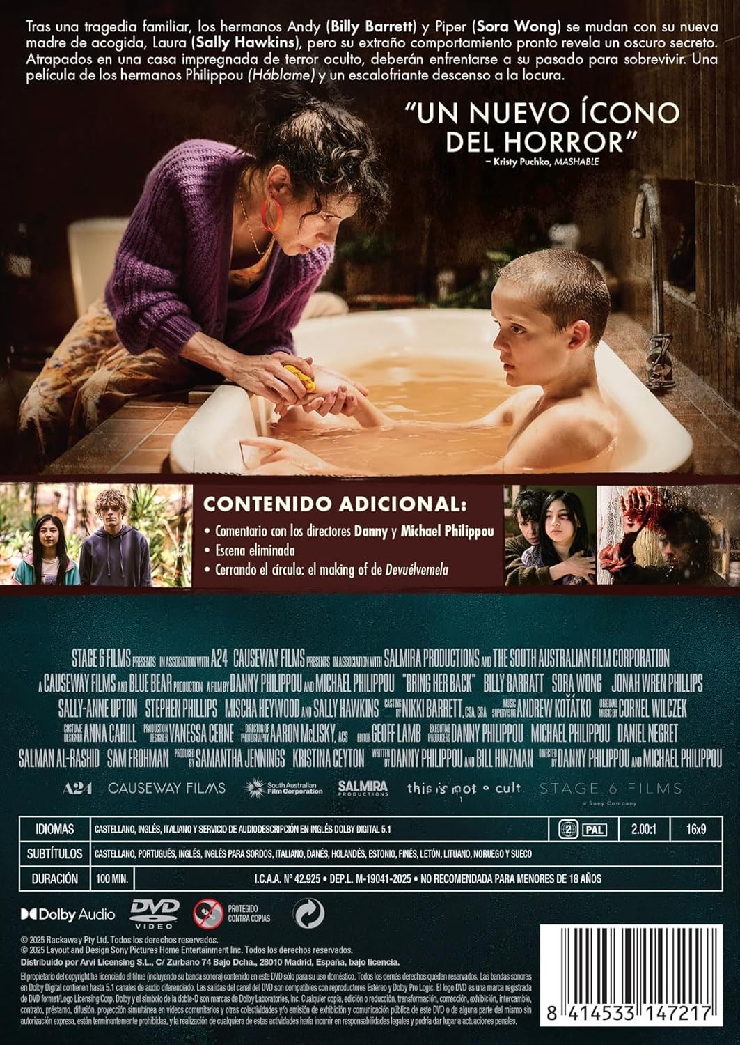 https://back.dvdstorespain.es/es/peliculas/127542-devuelvemela-dvd-dvd-2025--8414533147217.html127542Devuélvemela [DVD] (2025) Bring Her BackTras el fallecimiento de su padre, dos hermanos son adoptados por una mujer que vive en el bosque y cuyas actitudes les generan sospechas.https://dvdstorespain.es/1094783-home_default/devuelvemela-dvd-dvd-2025-.jpg17.2727instockARVI17.272717.2727002025-10-29T02:30:33+0100/Inicio/Inicio/DVD/Inicio/Películas/Inicio/Nuevos