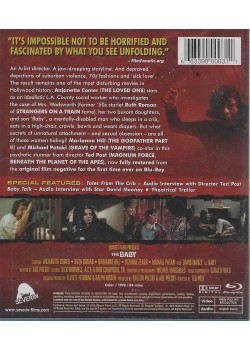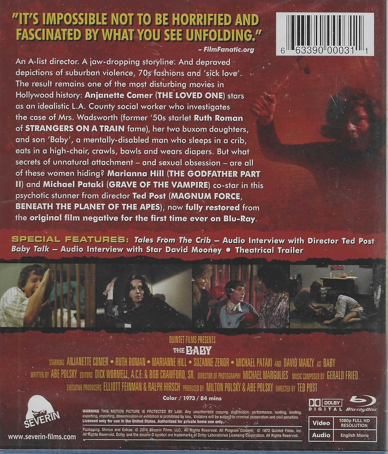 Presentamos 'The Baby' (1973), una película extraordinariamente perturbadora restaurada en Blu-ray con calidad 1080p Full HD. Esta obra única del cine de los años 70 presenta una historia inquietante sobre una trabajadora social del condado de Los Ángeles que investiga el peculiar caso de la familia Wadsworth. La trama se desarrolla en un ambiente suburbano, mezclando elementos de drama psicológico con toques perturbadores que la convierten en una de las películas más bizarras de la época. Con una duración de 84 minutos, esta edición especial de Severin Films incluye características adicionales como 'Tales from The Crib' y entrevistas de audio con el director Ted Post. La película viene con audio en inglés mono y representa una restauración completa del negativo original, presentada por primera vez en formato Blu-ray. Una pieza única del cine de culto que fascina y horroriza a partes iguales, tal como señala . Incluye subtítulos en inglés y está autorizada para su uso en Estados Unidos.