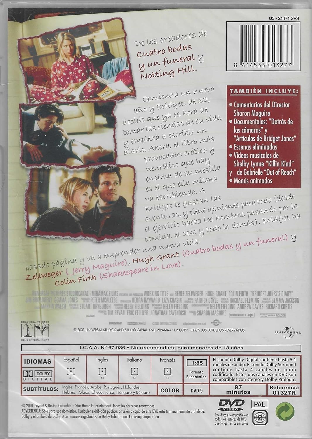 El Diario de Bridget Jones es una comedia romántica que sigue las aventuras de una mujer de 32 años decidida a tomar las riendas de su vida. Protagonizada por Renée Zellweger, Hugh Grant y Colin Firth, esta película captura perfectamente las situaciones cómicas y románticas de la vida moderna. Bridget decide comenzar un diario donde registra sus pensamientos más íntimos, sus deseos de mejorar y sus encuentros amorosos con dos hombres muy diferentes. Esta edición en DVD incluye audio en múltiples idiomas y subtítulos, ofreciendo una experiencia cinematográfica completa. Con una duración de 97 minutos, es perfecta para una noche de entretenimiento. Una historia divertida y conmovedora que conecta con cualquiera que haya experimentado los altibajos del amor y la búsqueda de la felicidad personal.