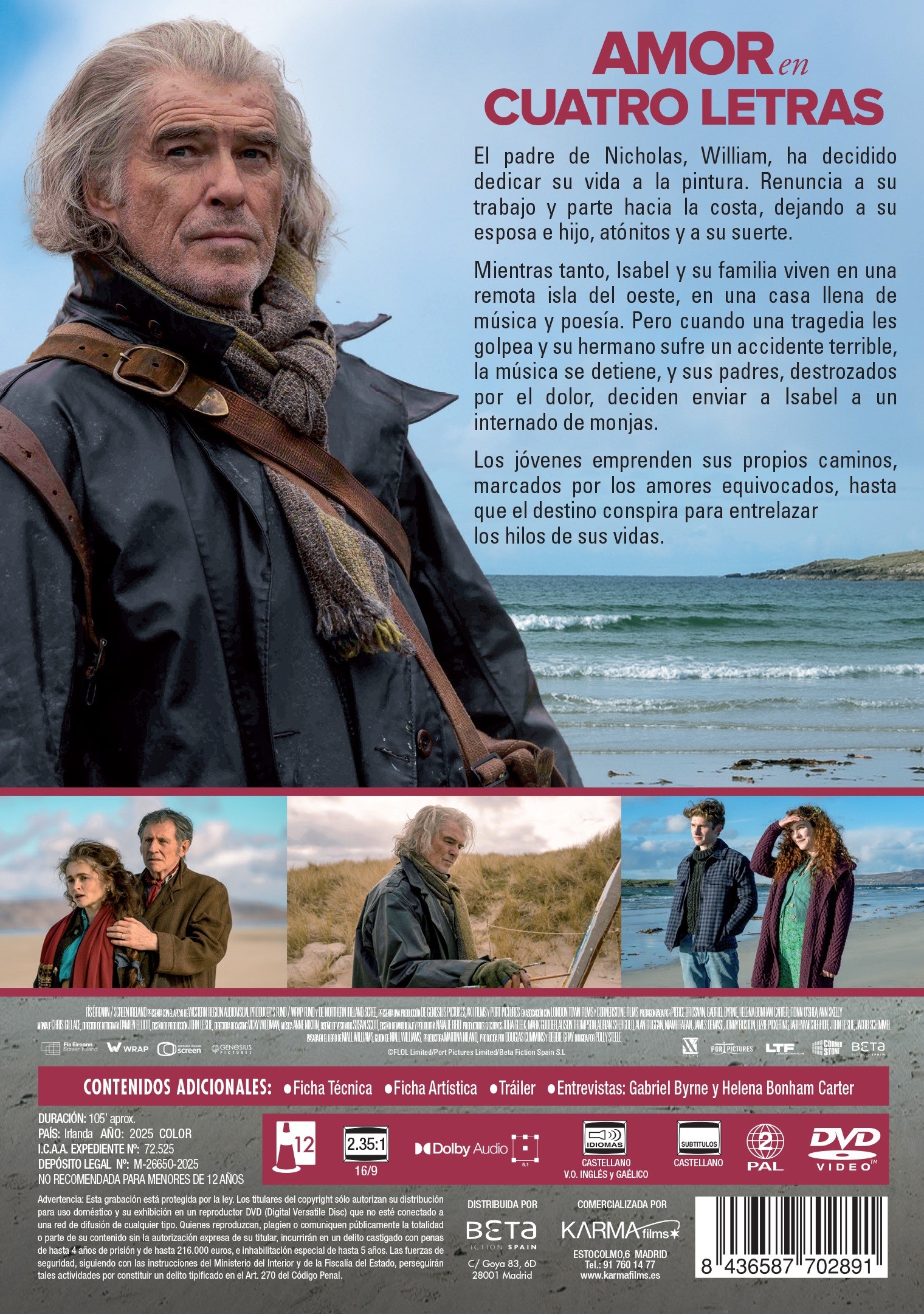 https://back.dvdstorespain.es/es/peliculas/128344-amor-en-cuatro-letras-dvd-2026--8436587702891.html128344Amor en Cuatro Letras [DVD] (2024) Four Letters of LoveNicolás e Isabel son almas gemelas destinadas a encontrarse, pero el camino del amor no es nada fácil. Mientras el padre de Nicholas persigue una llamada divina a la pintura, destrozando su tranquila vida, el mundo de Isabel se desmorona tras una tragedia familiar. Enviada a un convento, ella y Nicholas sufren el desengaño y la separación. Sin embargo, por avatares del destino, sus vidas se entrelazan en un milagroso reencuentro.https://dvdstorespain.es/1113002-home_default/amor-en-cuatro-letras-dvd-2026-.jpg12.3141instockKarma Films12.314112.3141002025-12-11T05:15:04+0100/Inicio/Inicio/DVD/Inicio/Películas/Inicio/Nuevos