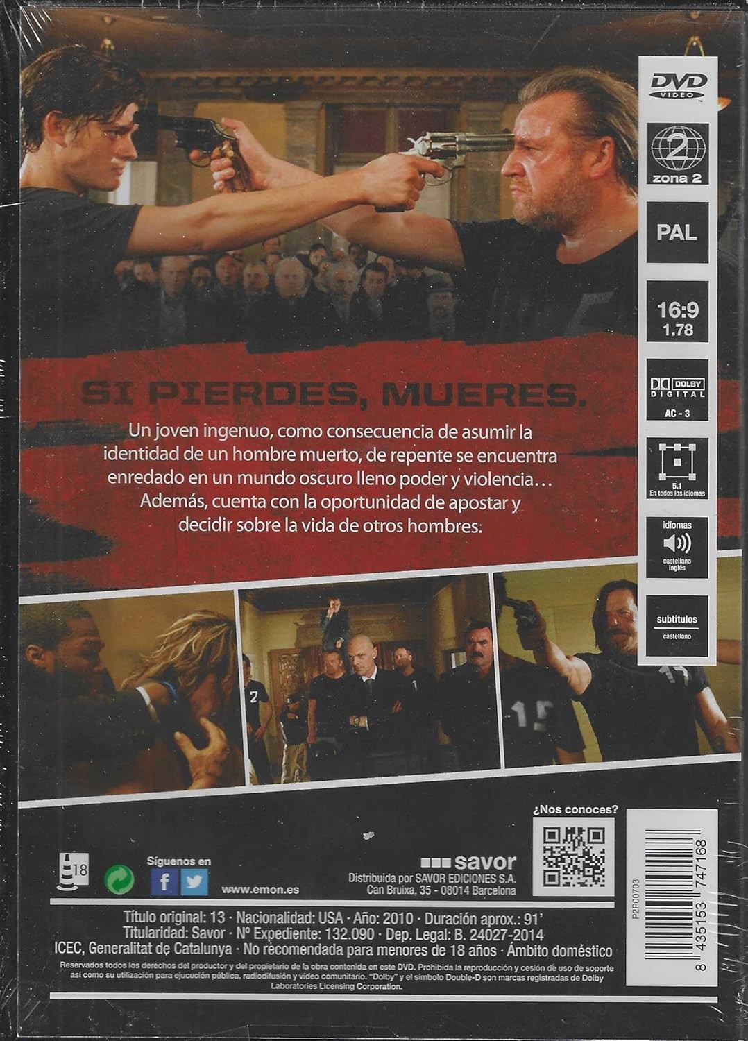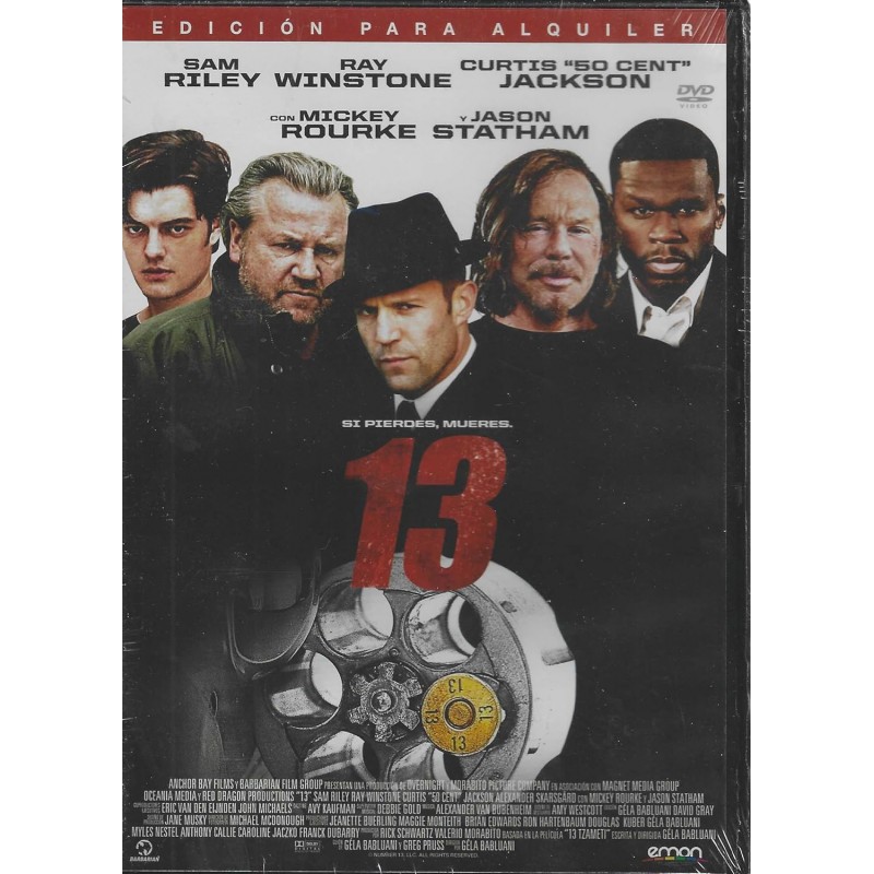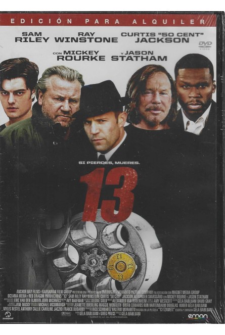 https://back.dvdstorespain.es/es/peliculas/128642-13-dvd-dvd-2024--0634065165628.html12864213 [DVD] (2010)Remake americano de la película francesa "13 Tzameti", dirigida por el propio Géla Babluani en 2005. El film narra varias historias entrelazadas con un punto común: la violencia y el poder. Un hombre joven (Sam Riley) se encuentra inmerso en una competición clandestina donde se apuesta la vida de seres humanos. Un presidiario (Mickey Rourke) de una prisión mexicana participa en el juego. Un competidor (Ray Winstone) que ha salido de un manicomio, un empleado (50 Cent) que tiene que escoltar al preso, un inglés adinerado (Jason Statham) que apuesta en la competición y tiene un peculiar interés por uno de sus contrincantes. Y, finalmente, un policía que sigue la pista del juego ilegal. https://dvdstorespain.es/1116168-home_default/13-dvd-dvd-2024-.jpg7.2727instock7.27277.2727002025-12-30T06:45:02+0100/Inicio/Inicio/DVD/Inicio/Películas/Inicio/Nuevos