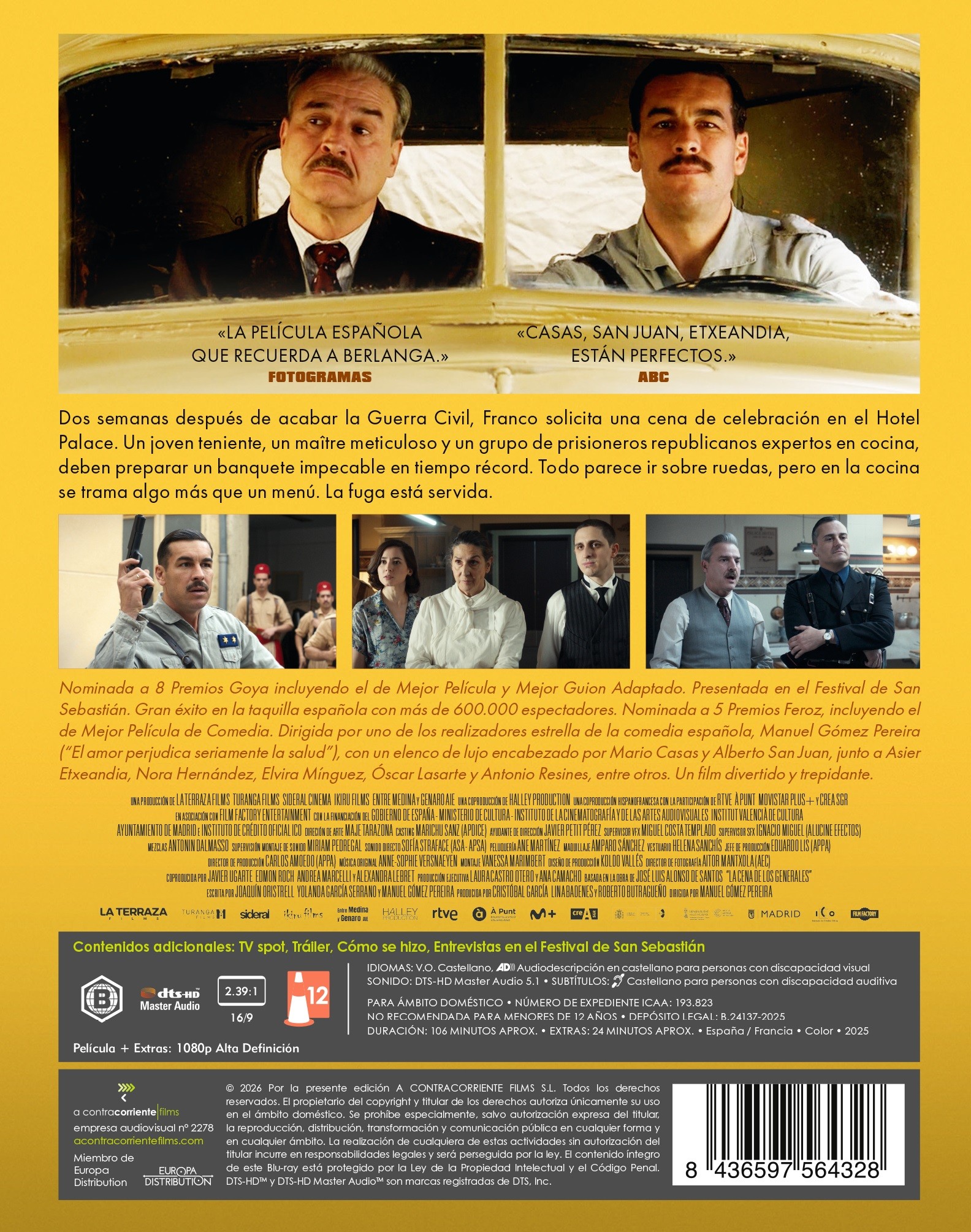 Dos semanas después de acabar la Guerra Civil, Franco solicita una cena de celebración en el Hotel Palace. Un joven teniente, un maître meticuloso y un grupo de prisioneros republicanos expertos en cocina, deben preparar un banquete impecable en tiempo récord. Todo parece ir sobre ruedas, pero en la cocina se trama algo más que un menú. Adaptación de la obra de José Luis Alonso de Santos.