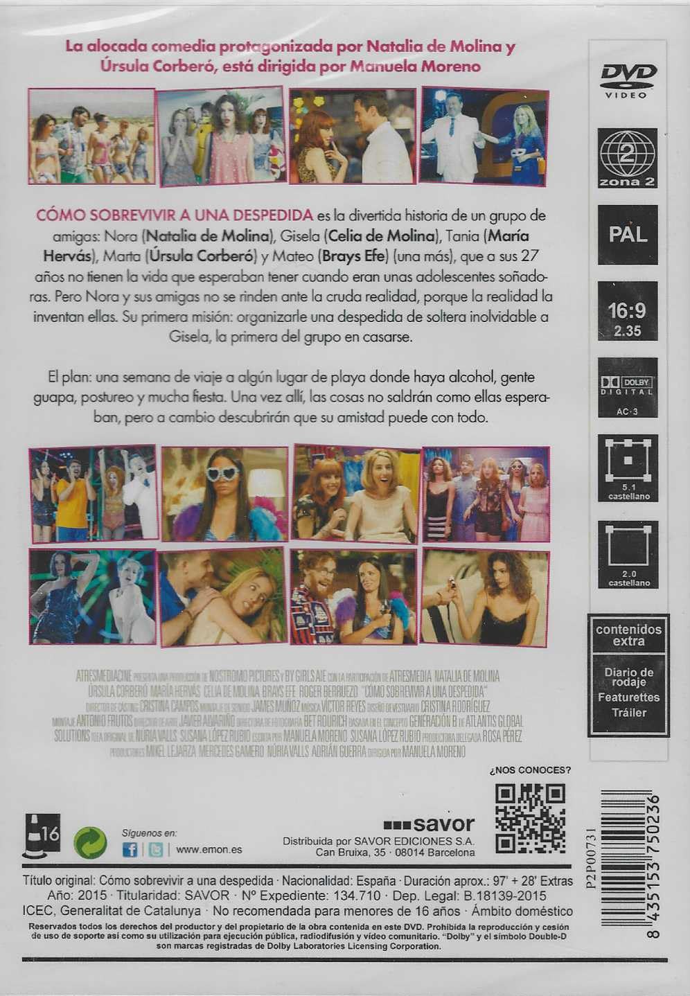 https://back.dvdstorespain.es/es/peliculas/128871-como-sobrevivir-a-una-despedida-dvd-dvd-2024--0634065166168.html128871Cómo Sobrevivir a una Despedida [DVD] (2015)Alocada historia de un grupo de amigas que a los 27 años no han conseguido lo que soñaban en la adolescencia: un buen trabajo, un novio como el de "Cincuenta sombras de Grey" y vivir en un pisazo céntrico. Como mileuristas, lo único que han logrado es compartir piso, trabajar como becarias, salir con chicos alérgicos al compromiso y comprarse ropa solo en las rebajas. Pero Nora y sus amigas no se rinden ante la cruda realidad. Lo primero que se proponen es organizarle una despedida de soltera inolvidable a Gisela, la más responsable del grupo. Y el destino escogido es Gran Canaria. https://dvdstorespain.es/1120960-home_default/como-sobrevivir-a-una-despedida-dvd-dvd-2024-.jpg7.9339instock7.93397.9339002026-01-22T04:45:35+0100/Inicio/Inicio/DVD/Inicio/Películas/Inicio/Nuevos