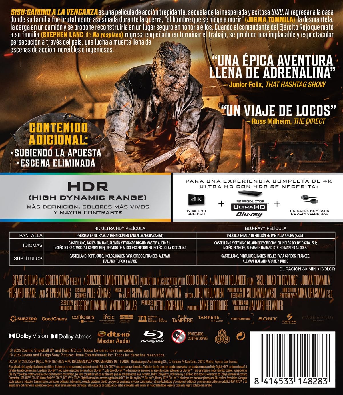 https://back.dvdstorespain.es/es/peliculas/129067-sisu-camino-a-la-venganza-4k-uhd-bd-blu-ray-2026--8414533148283.html129067Sisu: Camino a la Venganza [4K UHD, Blu-ray] (2025) Sisu 2De vuelta a la casa donde su familia fue brutalmente asesinada durante la guerra, "el hombre que se niega a morir" la desmantela, la carga en un camión y está decidido a reconstruirla en algún lugar seguro en su honor. Cuando el comandante del Ejército Rojo que mató a su familia regresa decidido a terminar el trabajo, se inicia una lucha a muerte. https://dvdstorespain.es/1124538-home_default/sisu-camino-a-la-venganza-4k-uhd-bd-blu-ray-2026-.jpg22.2314instock22.231422.2314002026-02-02T22:31:17+0100/Inicio/Inicio/Películas/Inicio/Nuevos/Inicio/4K-UHD