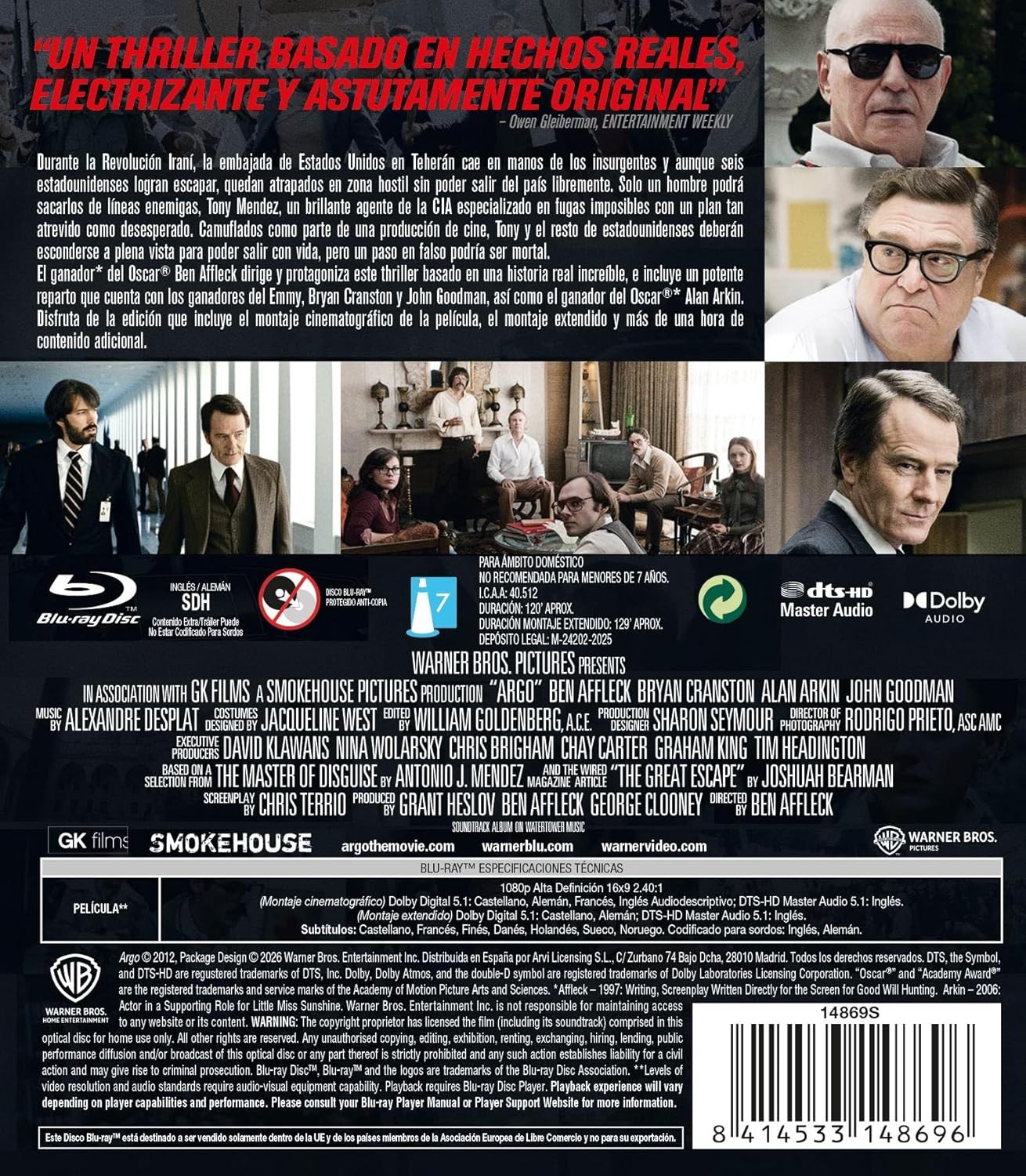 https://back.dvdstorespain.es/es/peliculas/129083-argo-bd-blu-ray-2026--8414533148696.html129083Argo [Blu-ray] (2012)Irán, año 1979. Cuando la embajada de los Estados Unidos en Teherán es ocupada por seguidores del Ayatolá Jomeini para pedir la extradición del Sha de Persia, la CIA y el gobierno canadiense organizaron una operación para rescatar a seis diplomáticos estadounidenses que se habían refugiado en la casa del embajador de Canadá. Con este fin se recurrió a un experto en rescatar rehenes y se preparó el escenario para el rodaje de una película de ciencia-ficción, de título "Argo", en la que participaba un equipo de cazatalentos de Hollywood. La misión: ir a Teherán y hacer pasar a los diplomáticos por un equipo de filmación canadiense para traerlos de vuelta a casa. https://dvdstorespain.es/1124571-home_default/argo-bd-blu-ray-2026-.jpg11.7355instock11.735511.7355002026-02-02T22:32:41+0100/Inicio/Inicio/Blu-ray/Inicio/Películas/Inicio/Nuevos