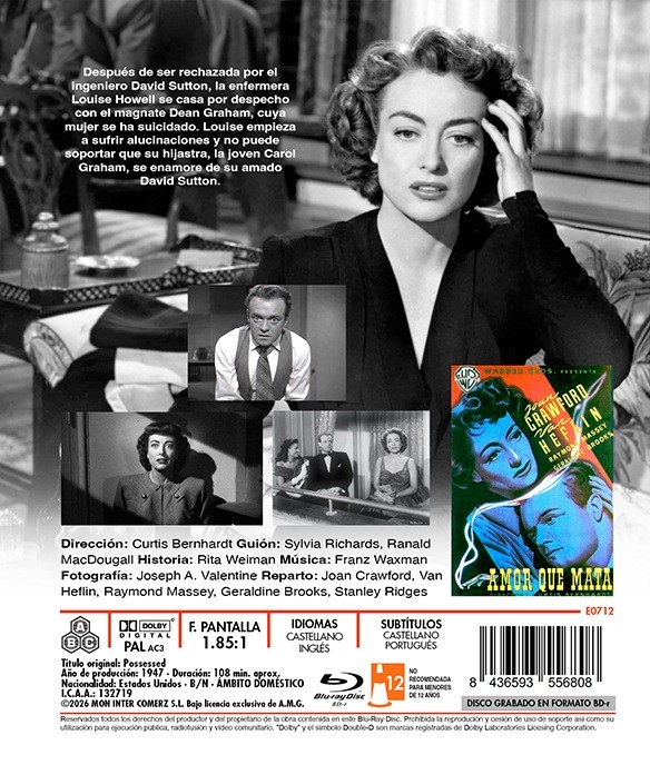 https://back.dvdstorespain.es/es/peliculas/129121-amor-que-mata-bdr-possessed-blu-ray-2026--8436593556808.html129121Amor que Mata [Blu-ray R] (1947) PossessedDespués de ser rechazada por el ingeniero David Sutton (Van Heflin), la enfermera Louise Howell (Joan Crawford) se casa por despecho con el magnate Dean Graham (Raymond Massey), cuya mujer se ha suicidado. Louise empieza a sufrir alucinaciones y no puede soportar que su hijastra, la joven Carol Graham (Geraldine Brooks), se enamore de su amado David Sutton...https://dvdstorespain.es/1125695-home_default/amor-que-mata-bdr-possessed-blu-ray-2026-.jpg9.0909instock9.09099.0909002026-02-04T17:30:13+0100/Inicio/Inicio/Películas/Inicio/Nuevos/Inicio/NO EBY DVDR-BDR/Inicio/Blu-ray R