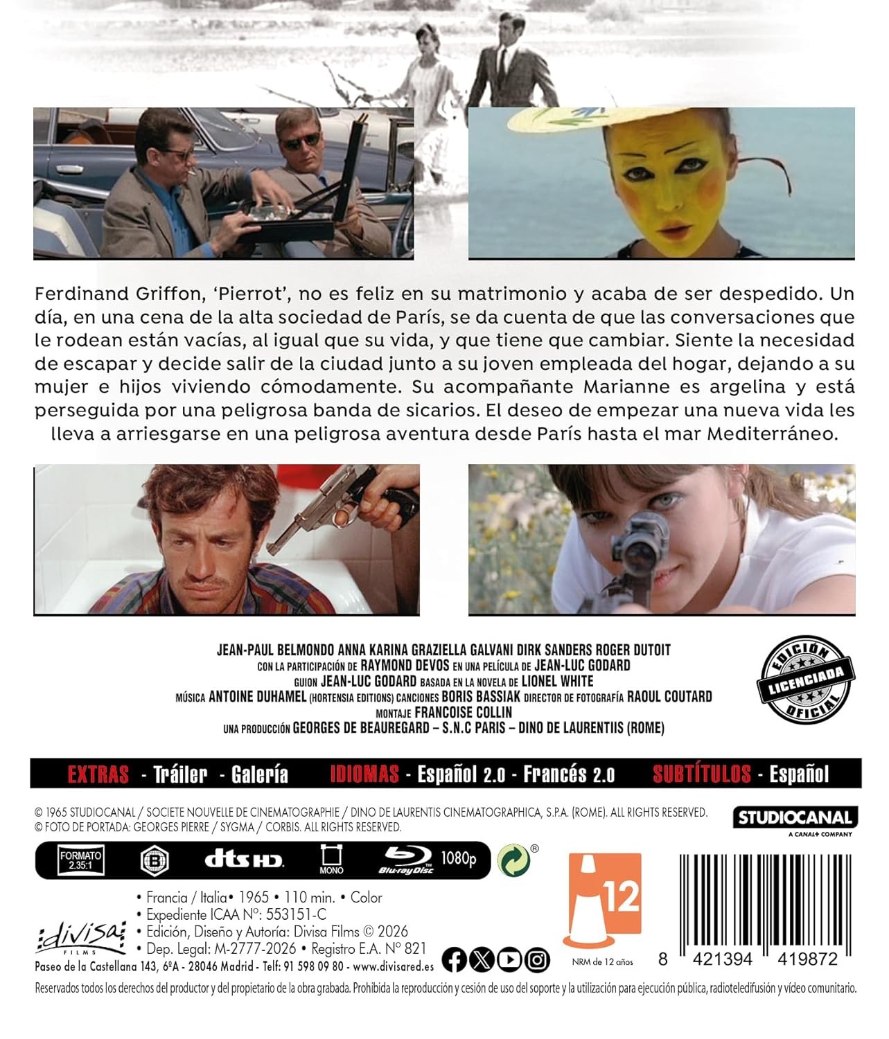 https://back.dvdstorespain.es/es/peliculas/129137-pierrot-el-loco-pierrot-le-fou-1965-jean-luc-godard-blu-ray-blu-ray-2026--8421394419872.html129137Pierrot el Loco [Blu-ray] (1965) Pierrot le fouFerdinand Griffon, alias 'Pierrot', huye de París con Marianne, la niñera que ha contratado su esposa. La pareja se dirige al sur de Francia, pero el viaje se torna muy peligroso cuando una banda de gángsters con los que Marianne está implicada, les va pisando los talones. https://dvdstorespain.es/1126270-home_default/pierrot-el-loco-pierrot-le-fou-1965-jean-luc-godard-blu-ray-blu-ray-2026-.jpg11.9835instock11.983511.9835002026-02-05T21:30:17+0100/Inicio/Inicio/Blu-ray/Inicio/Películas/Inicio/Nuevos